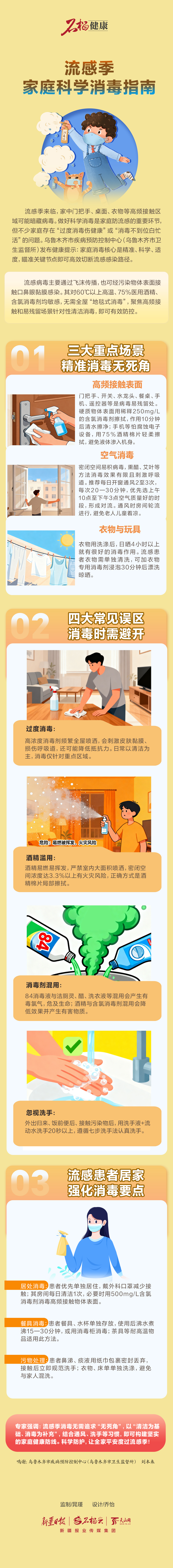 流感季来临,家中门把手、桌面、衣物等高频接触区域可能暗藏病毒。做好科学消毒是家庭防流感的重要环节,但不少家庭存在“过度消毒伤健康”或“消毒不到位白忙活”的问题。乌鲁木齐市疾病预防控制中心(乌鲁木齐市卫生监督所)发布健康提示:家庭消毒核心是精准、科学、适度,瞄准关键节点即可高效切断流感感染路径。