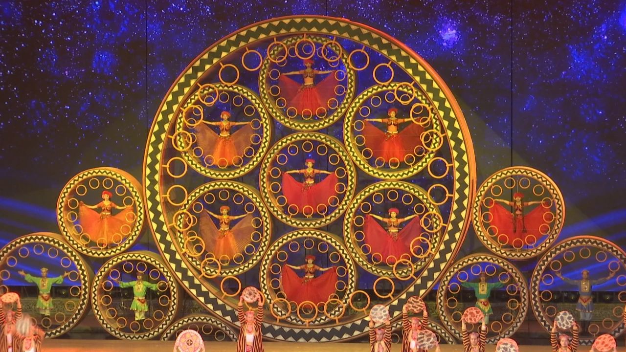 《千回西域》融合了风情歌舞、杂技艺术,将新疆本土乐舞与丝路文化巧妙串联,借助现代高科技虚拟现实技术,打造沉浸式观影体验,让观众在短时间内纵览新疆丰富的旅游资源和民俗文化,感受新疆人民的热情好客。
