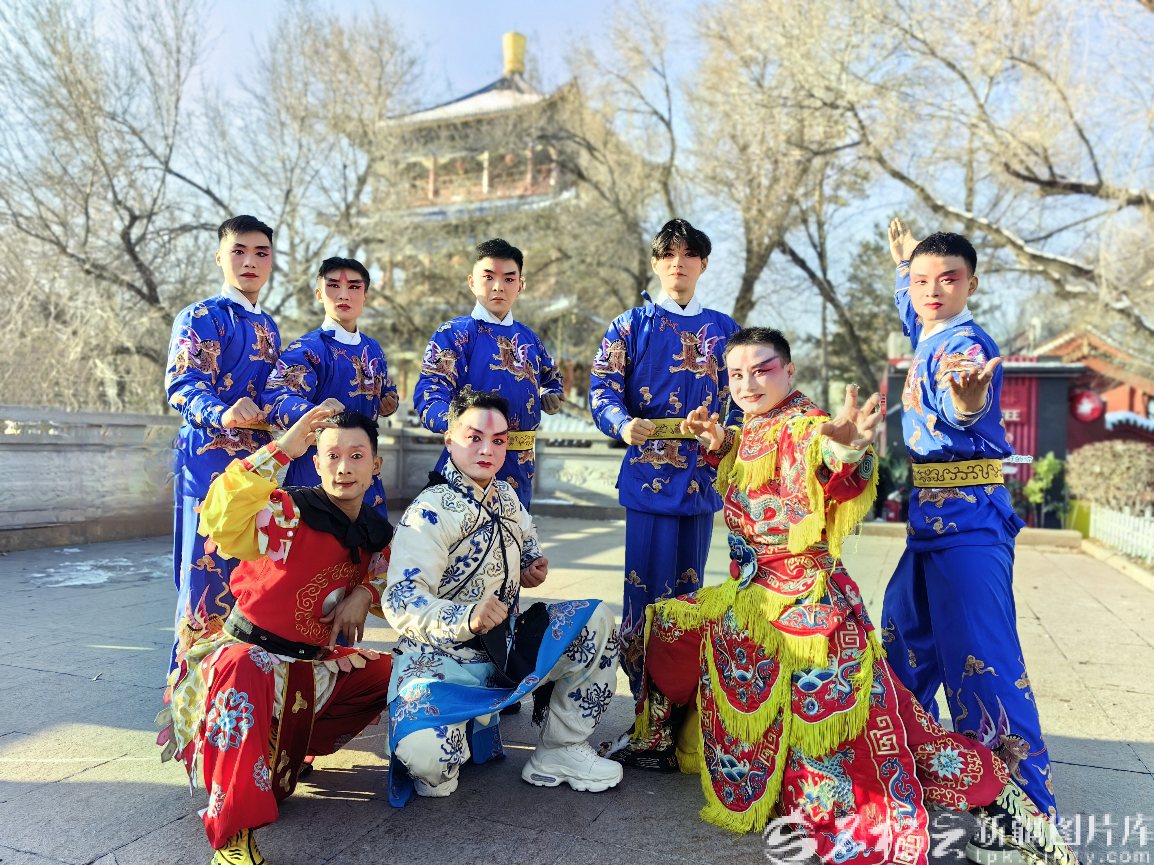 11月11日,在乌鲁木齐市红山公园,豫剧表演者们在表演前合影。
