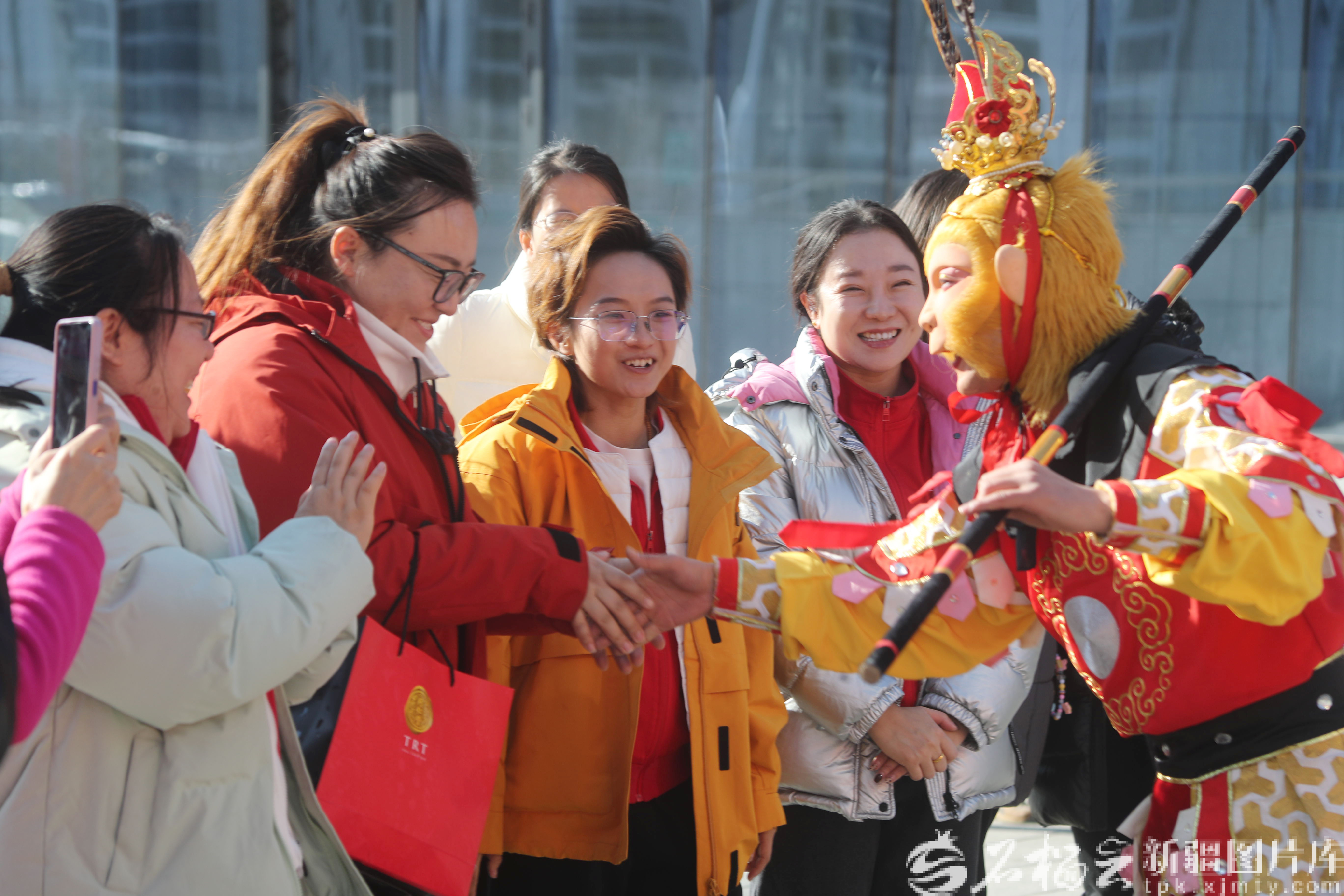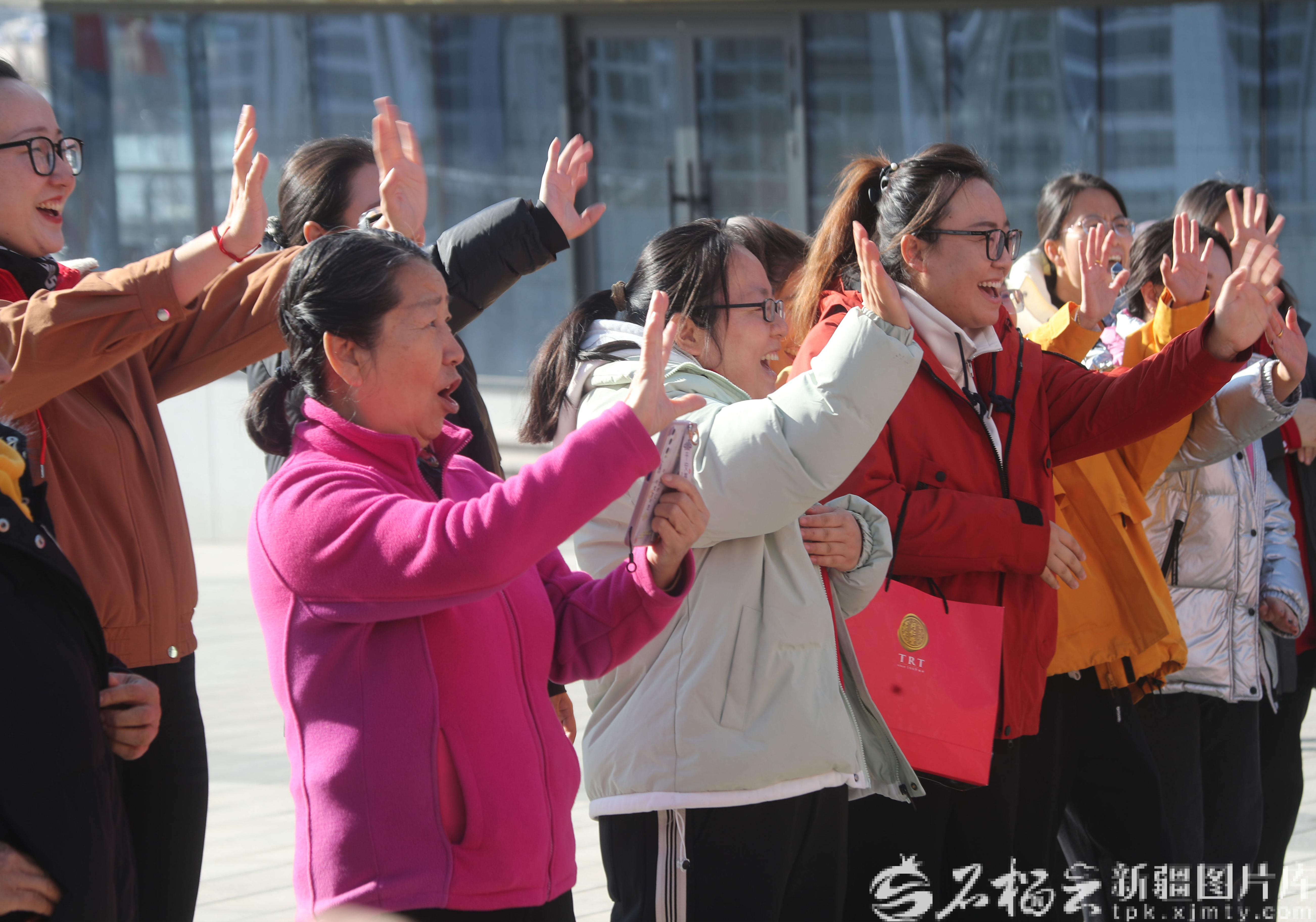 11月11日,在乌鲁木齐文化中心,表演者与观众互动。