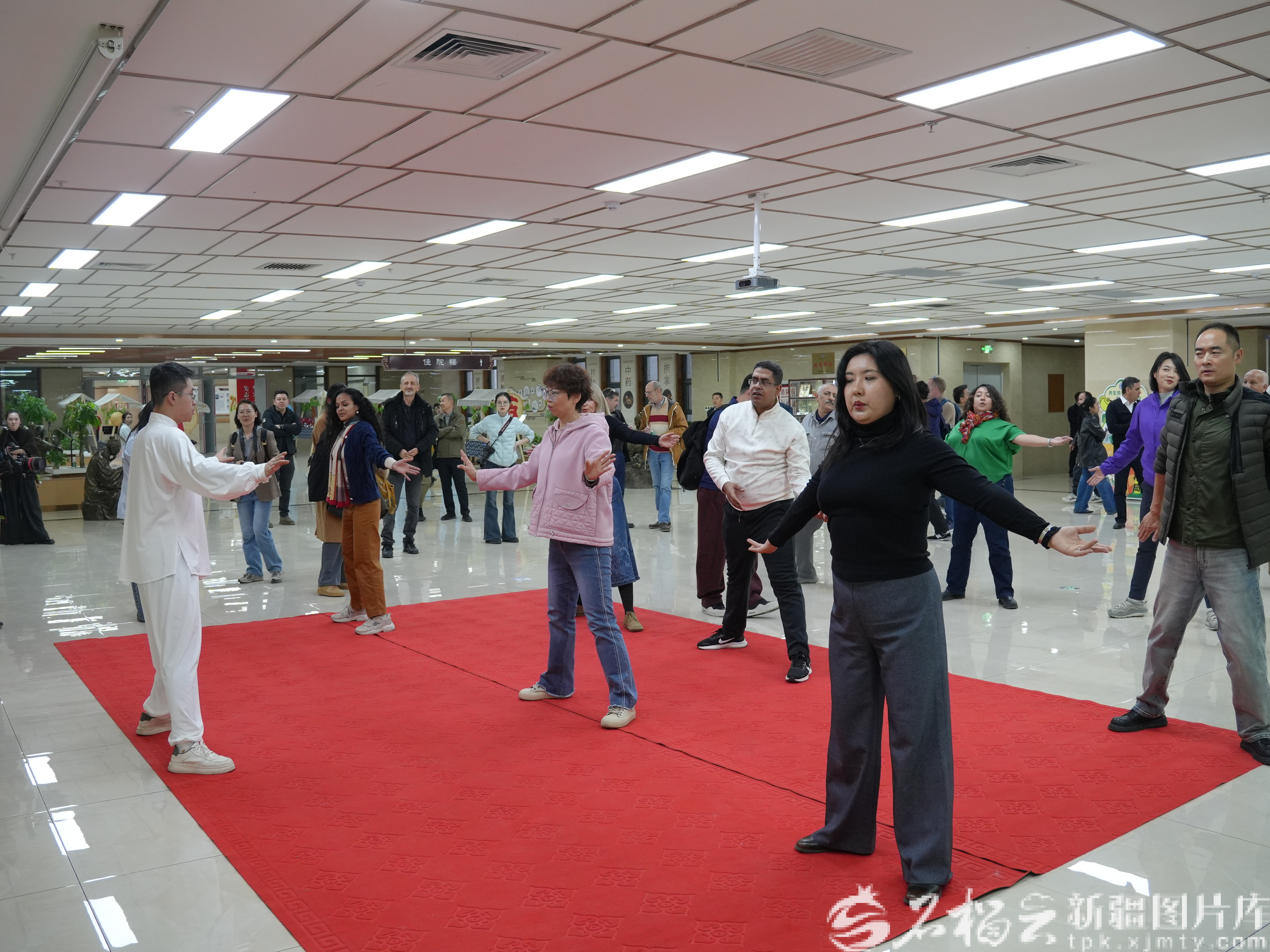 专家学者体验八段锦。石榴云/新疆日报记者 闫啸天摄