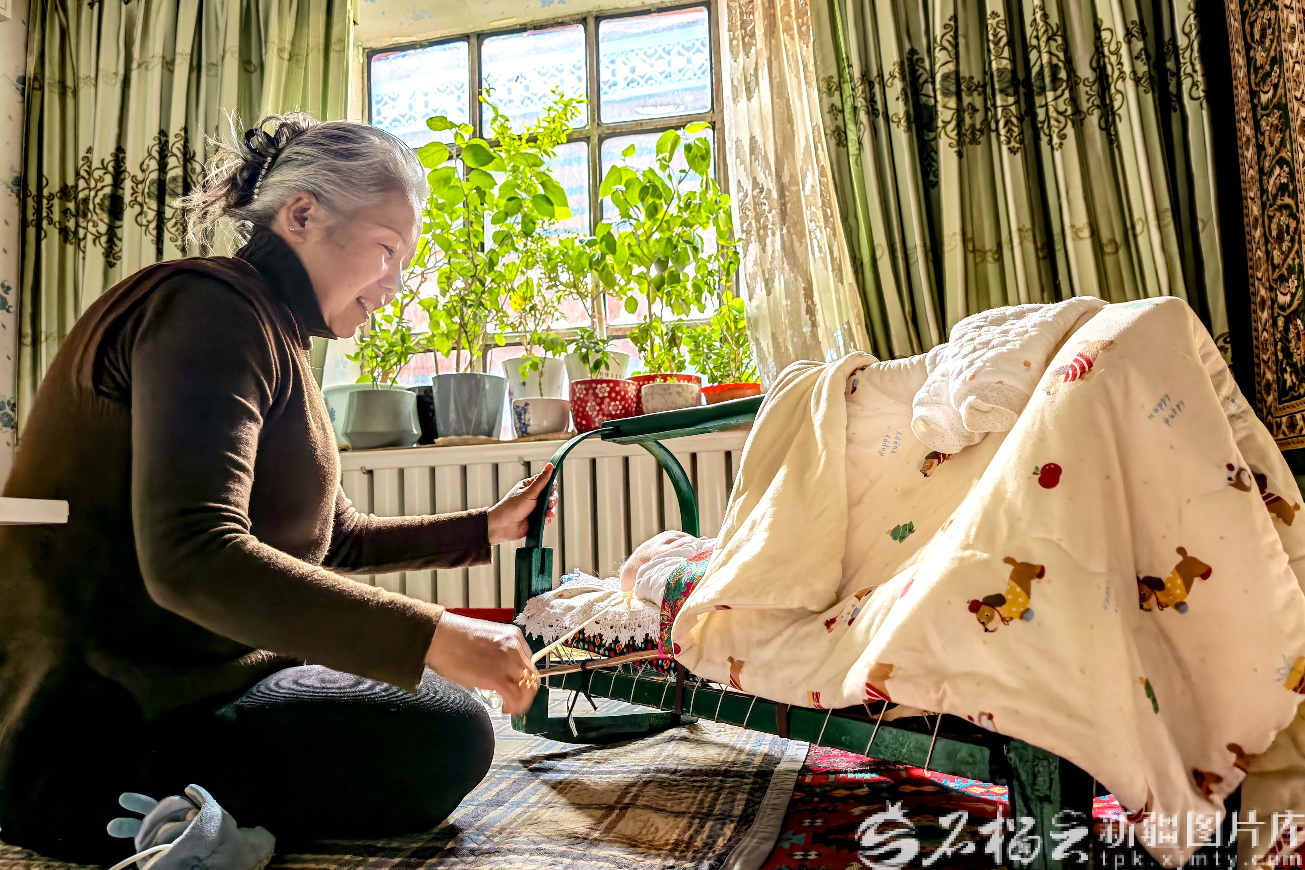 12月4日,吐鲁番市高昌区亚尔镇英买里村村民祖日古丽·阿布力孜在家中照看熟睡的宝宝。
