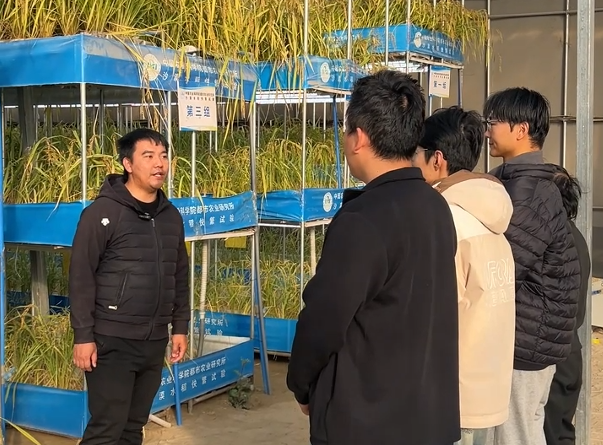 中国农业科学院都市农业研究所智能园艺装备团队科研助理史大炜(左一)宣布试验成功。