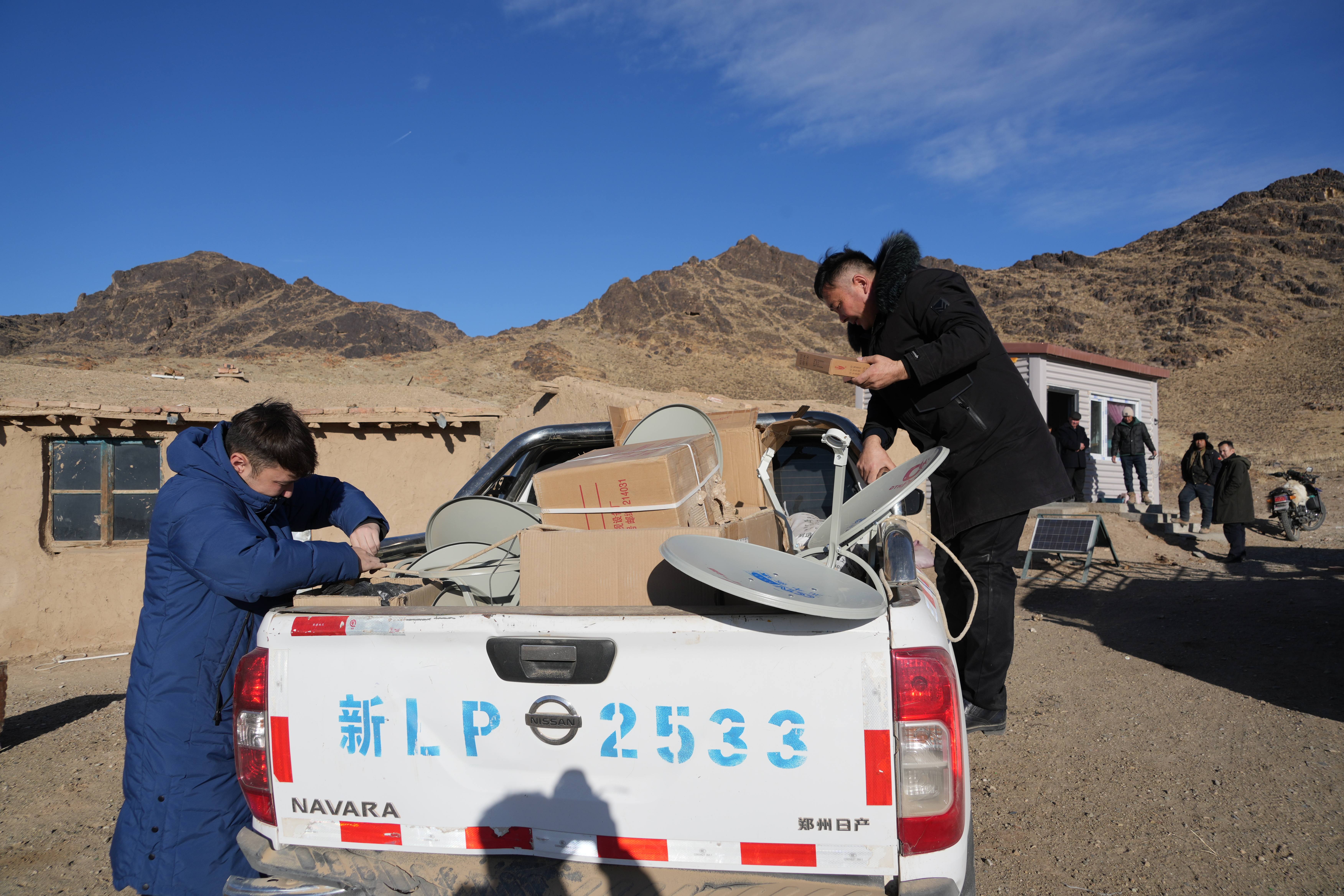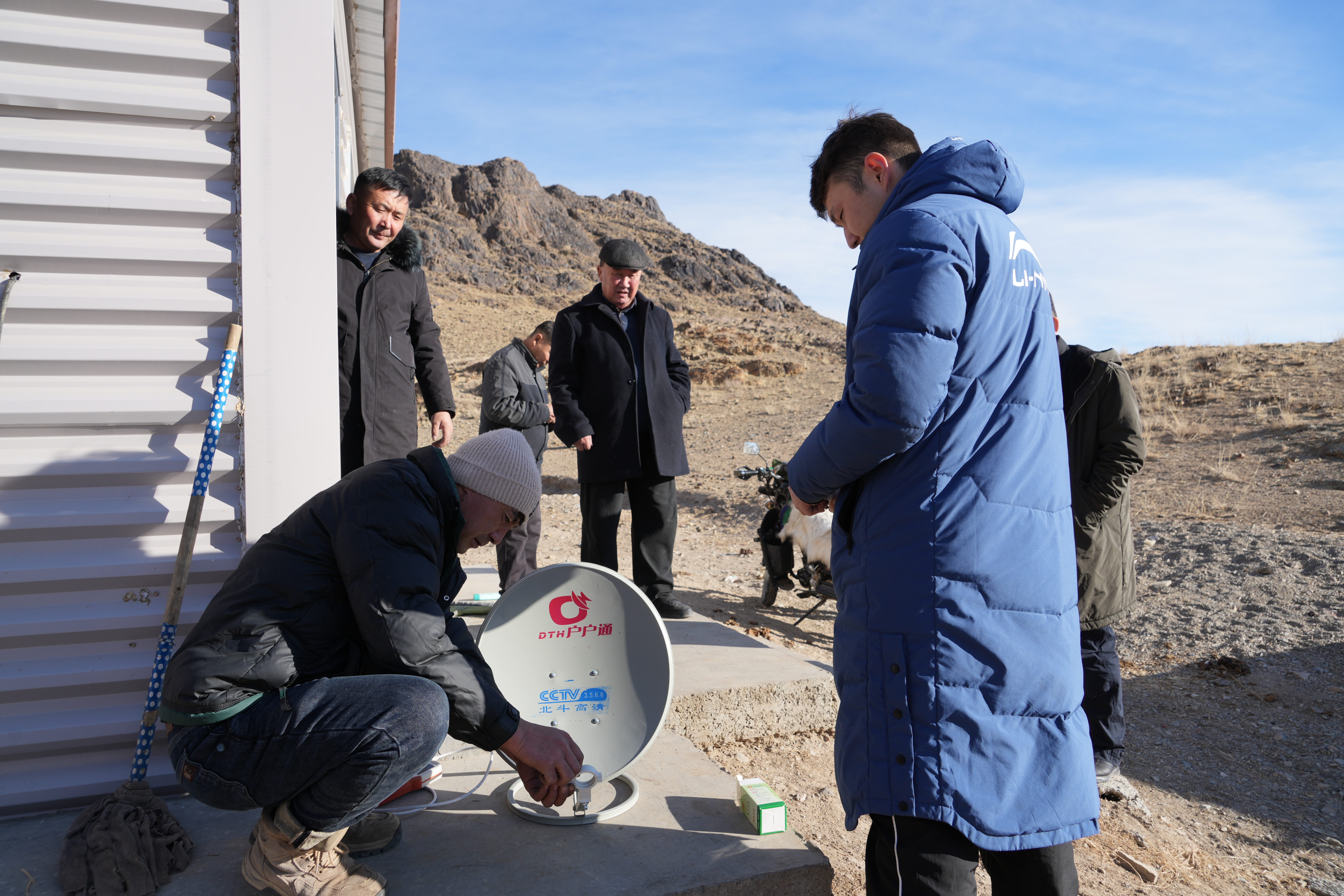 12月4日,技术人员来到萨尔乔克乡和下涝坝乡冬季草场,为牧民安装“户户通”卫星接收设备,解决牧民在冬草场看电视难的问题。