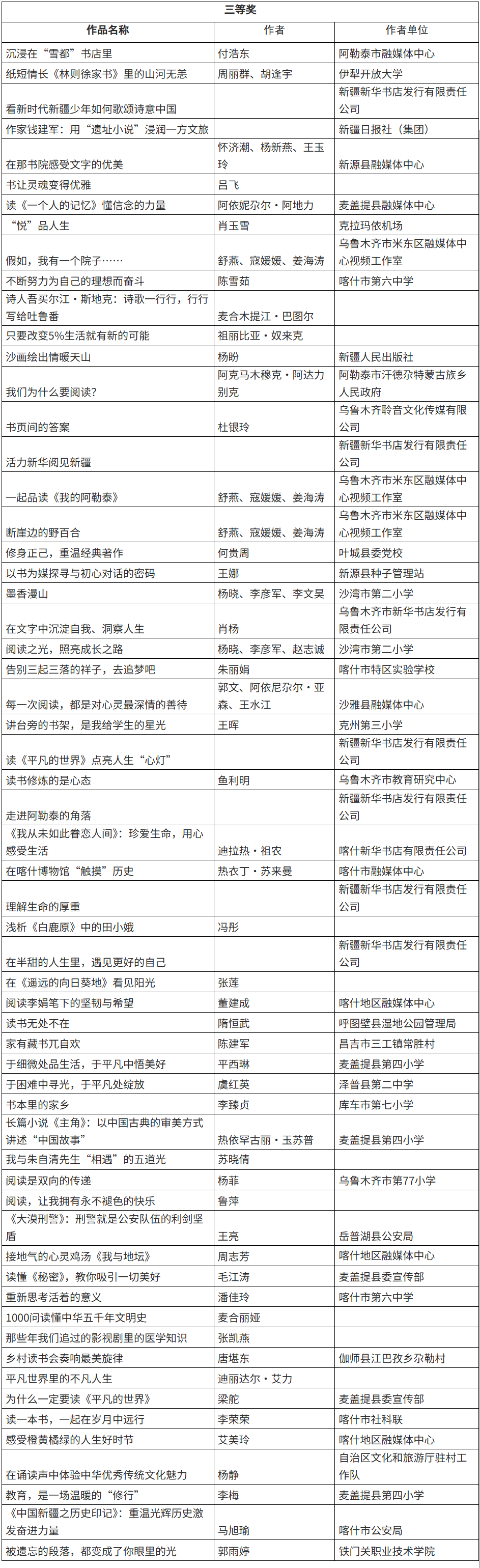 由自治区党委宣传部指导,新疆日报社(集团)主办的“书香满天山”全民阅读短视频征集活动,自启动以来收到大量优秀作品,经评审,最终评选出一等奖10件、二等奖50件、三等奖60件,组织奖10个。为维护活动的公平公正,培育尊重原创、恪守诚信的品格,现将拟获奖名单公示如下,接受社会各界监督。