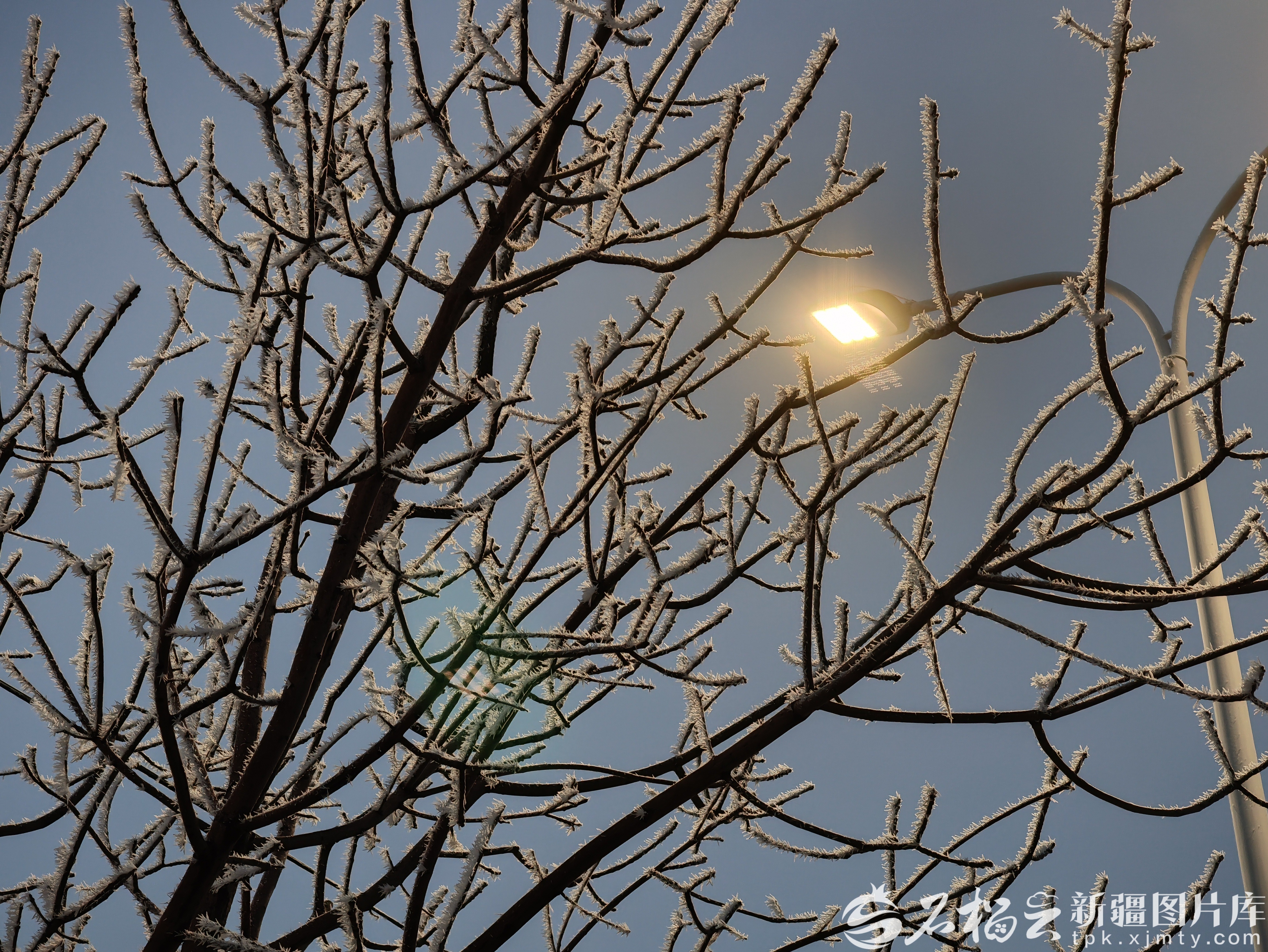 12月8日,乌鲁木齐市水磨沟区静园路上的雾凇景观。石榴云/新疆日报记者 秦鹏摄