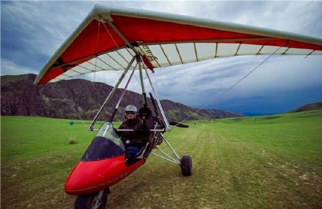 喀拉峻景区,游客体验动力三角翼飞行旅游项目。资料图片