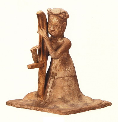 隋代乐伎俑中演奏箜篌的乐伎。资料图