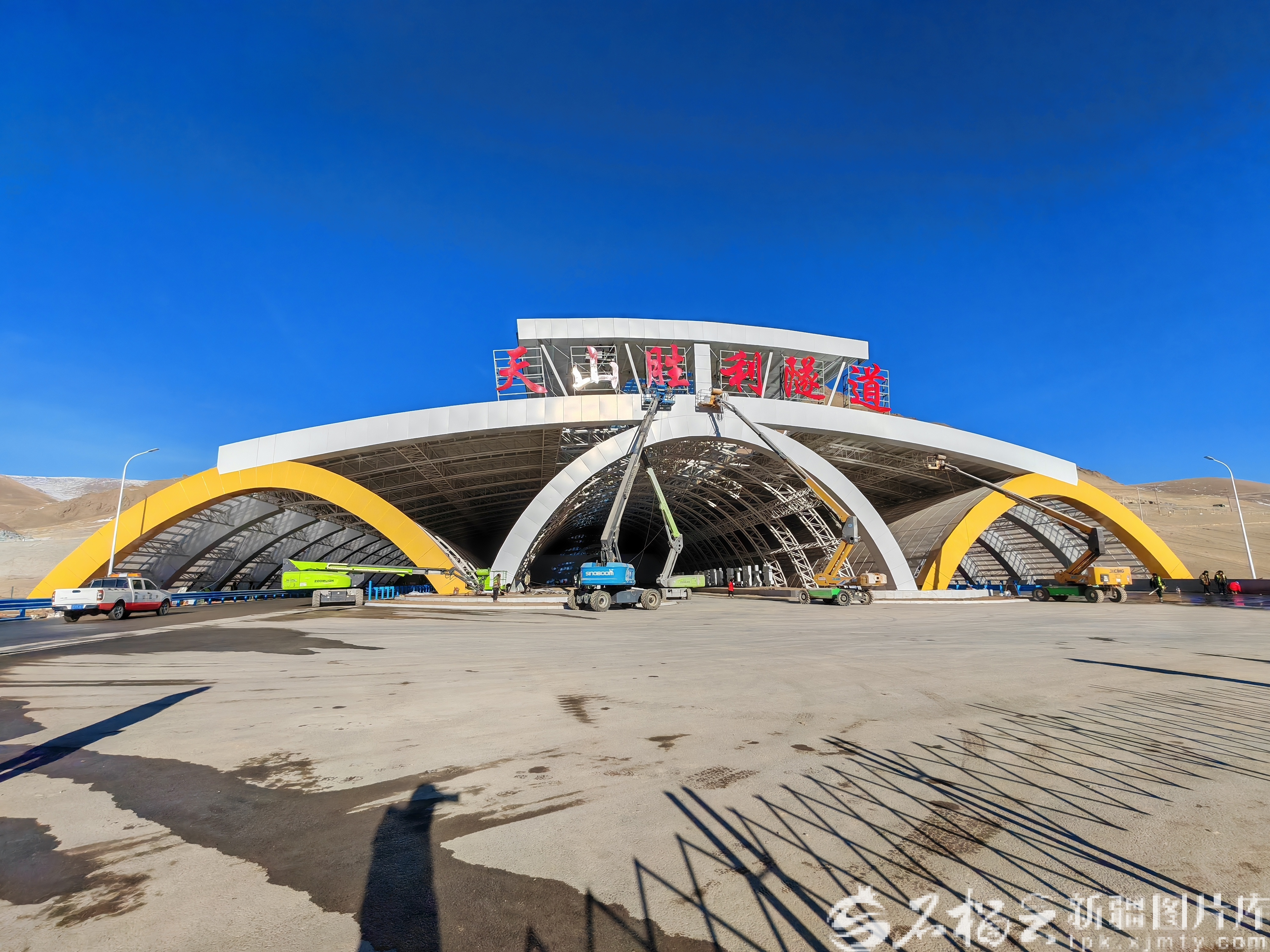 天山胜利隧道出口端,施工人员在施工。(资料图)