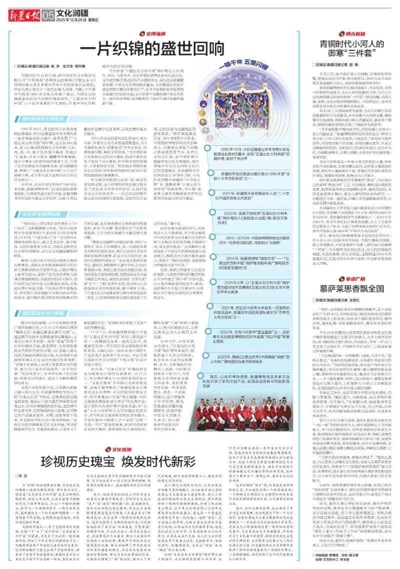 30年守护,30年传承,30年新生。“五星出东方利中国”锦护臂所承载的,既是跨越千年的文明智慧,也是生生不息的民族精神。如今,当织锦纹样在舞台上流转,当织锦文创走进千家万户,当各族群众共同讲述这段文明故事,我们看到的不仅是一件国宝的重生,更是一个民族的复兴。这片穿越两千年的织锦,照见的是盛世新疆的璀璨图景,传递的是中华文化的强大生命力,昭示的是中华民族共同体的光明未来。