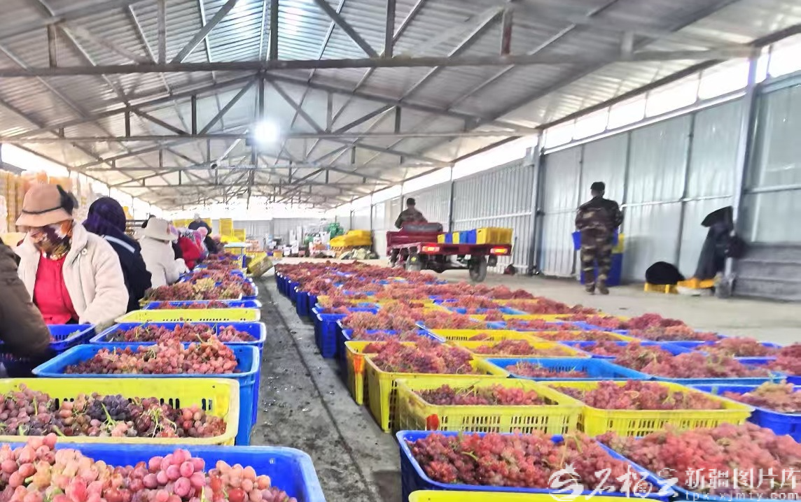 在博乐市西域丰农葡萄种植农民专业合作社联合社的分拣车间内,工人们正在分拣葡萄,这些葡萄会通过冷链运往国外。记者 曹华摄