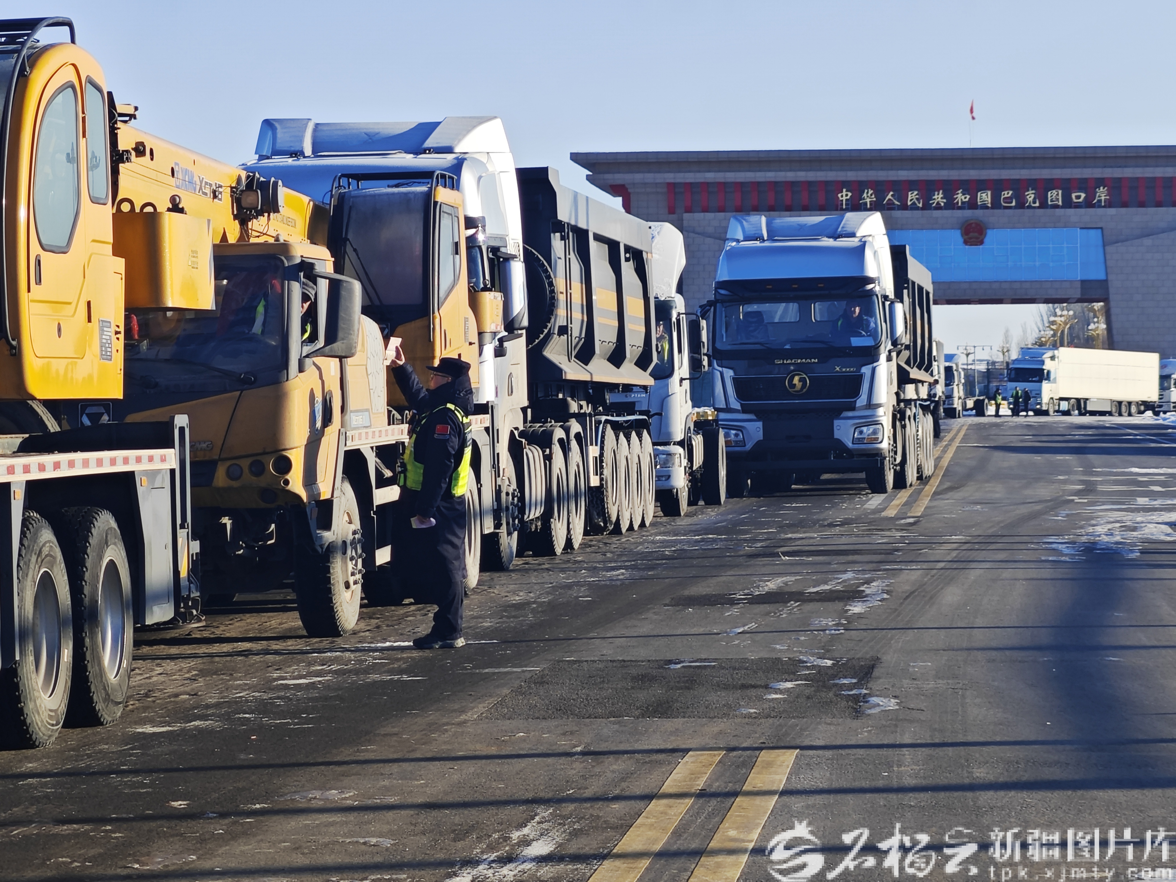 12月25日,巴克图边检站执勤民警在查看入境货车司机的证件。董佳贻 摄
