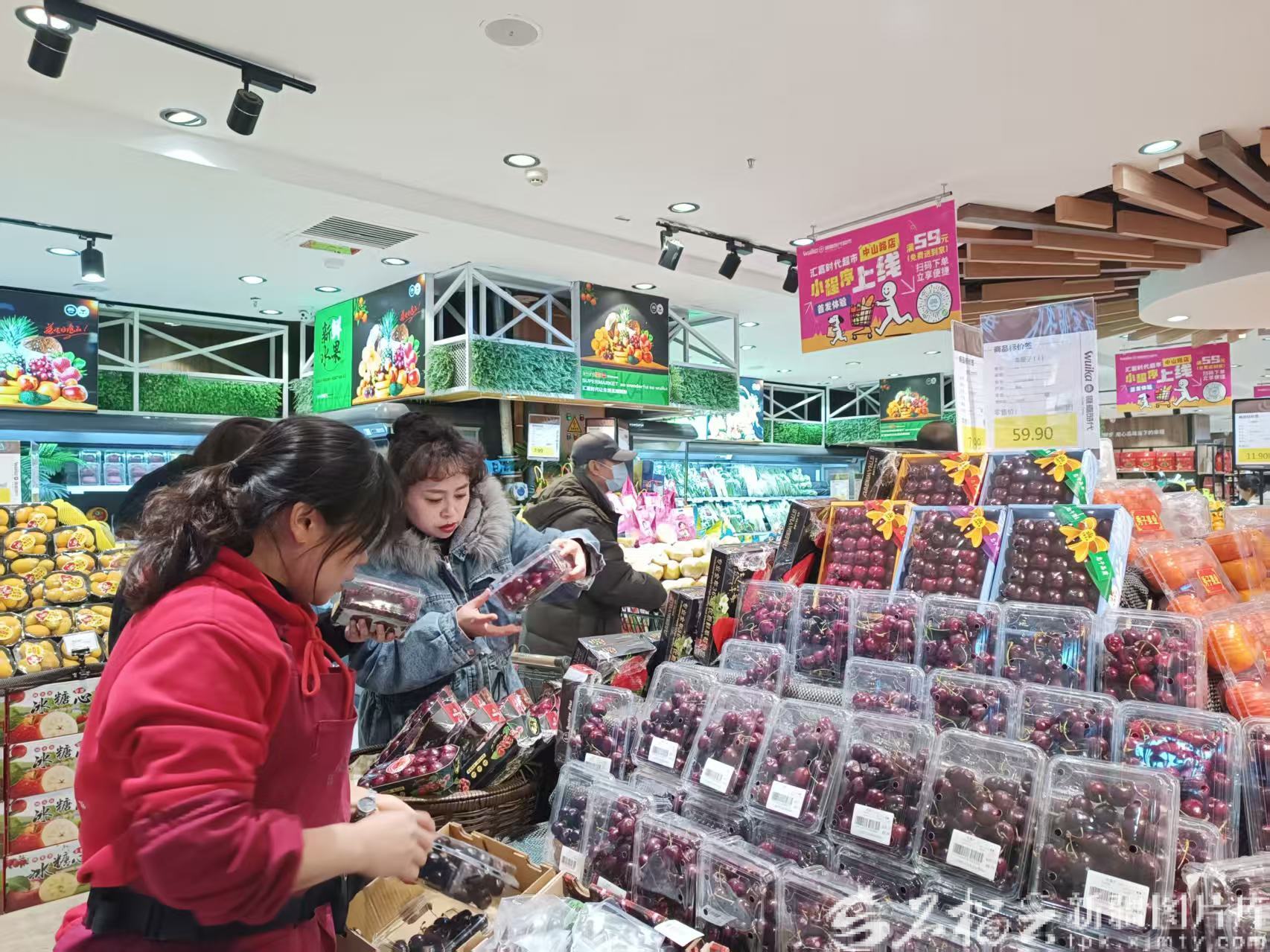 12月31日,乌鲁木齐汇嘉时代(中山路店)超市内,市民在选购水果。石榴云/新疆日报记者 张冬梅摄