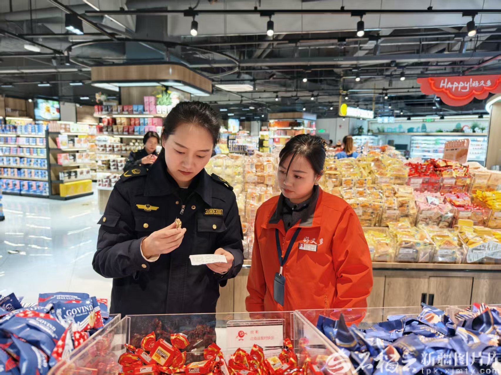 12月31日,阿克苏市市场监督管理局执法人员在好又多超市开展执法检查。陆雪婷摄