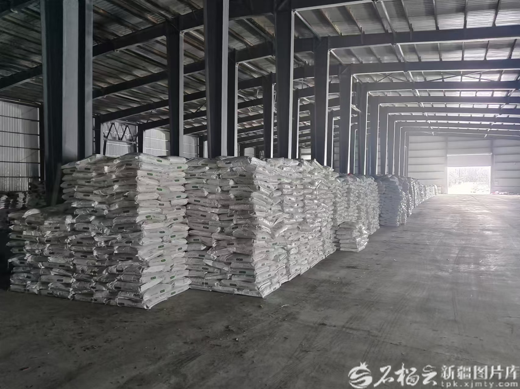 12月30日,在博尔塔拉蒙古自治州供销兴农农业投资有限公司的农资仓储库,堆放着整齐码放的化肥。张东辰摄
