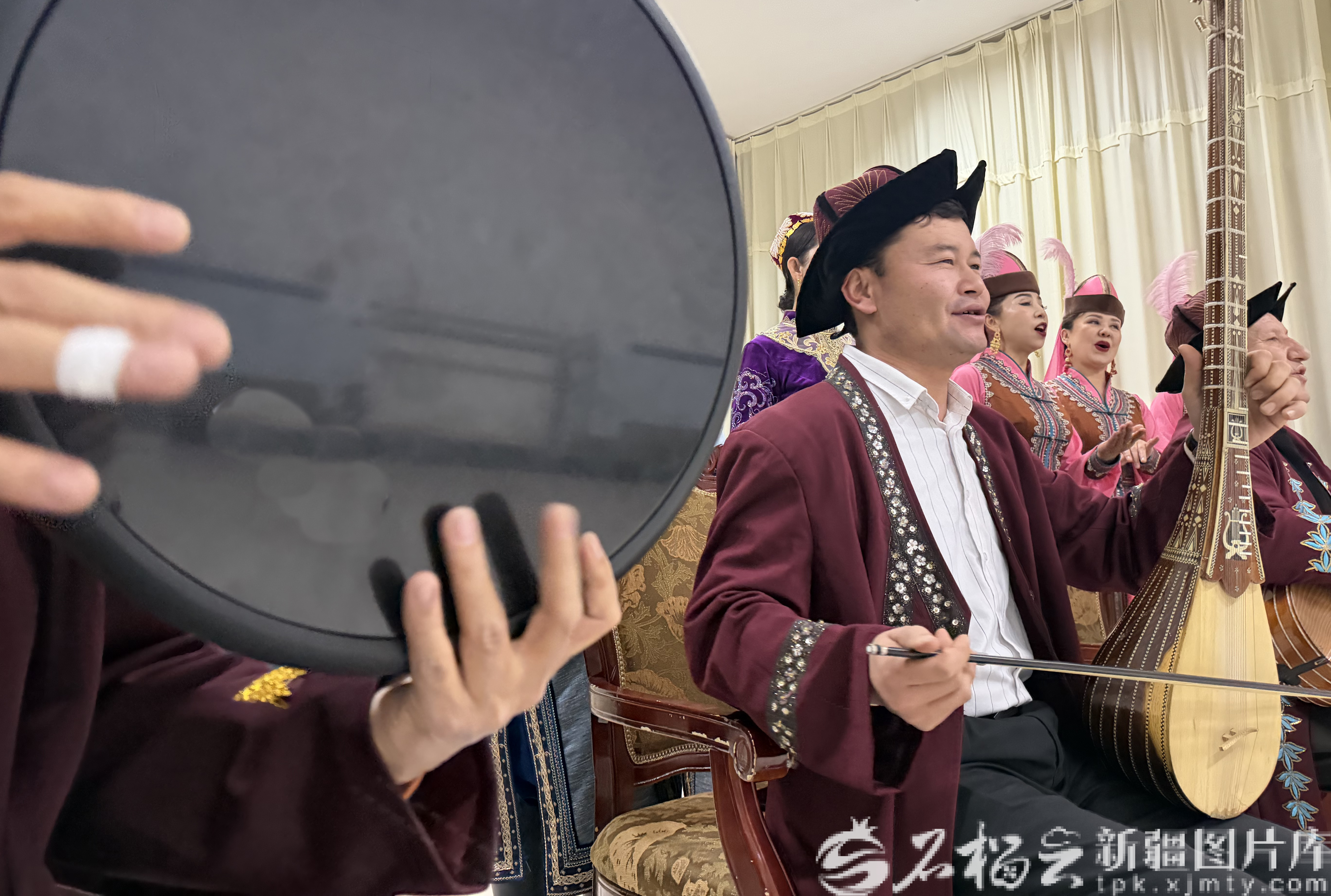 “每次站在舞台上,我都能感受到民歌的生命力。”后台化妆间里,曼苏尔江说,“小时候,父亲总抱着都塔尔坐在院子里弹唱,那些旋律就像春风一样,悄悄钻进我心里。” 曼苏尔江笑着说,从那时起,他就跟着父亲学唱民歌,都塔尔、弹拨尔、沙塔尔、手鼓……学会了多种民族乐器。