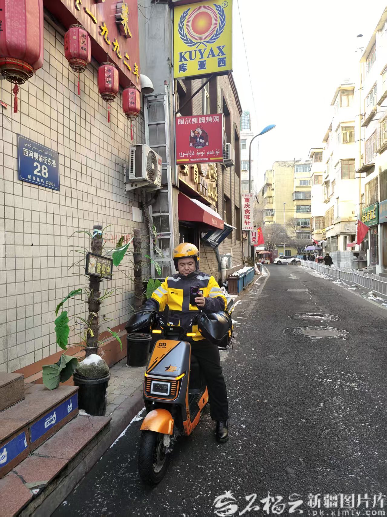 1月1日,外卖骑手迪力木拉提·吐依洪在送餐途中。天山网-新疆日报记者 张冬梅摄