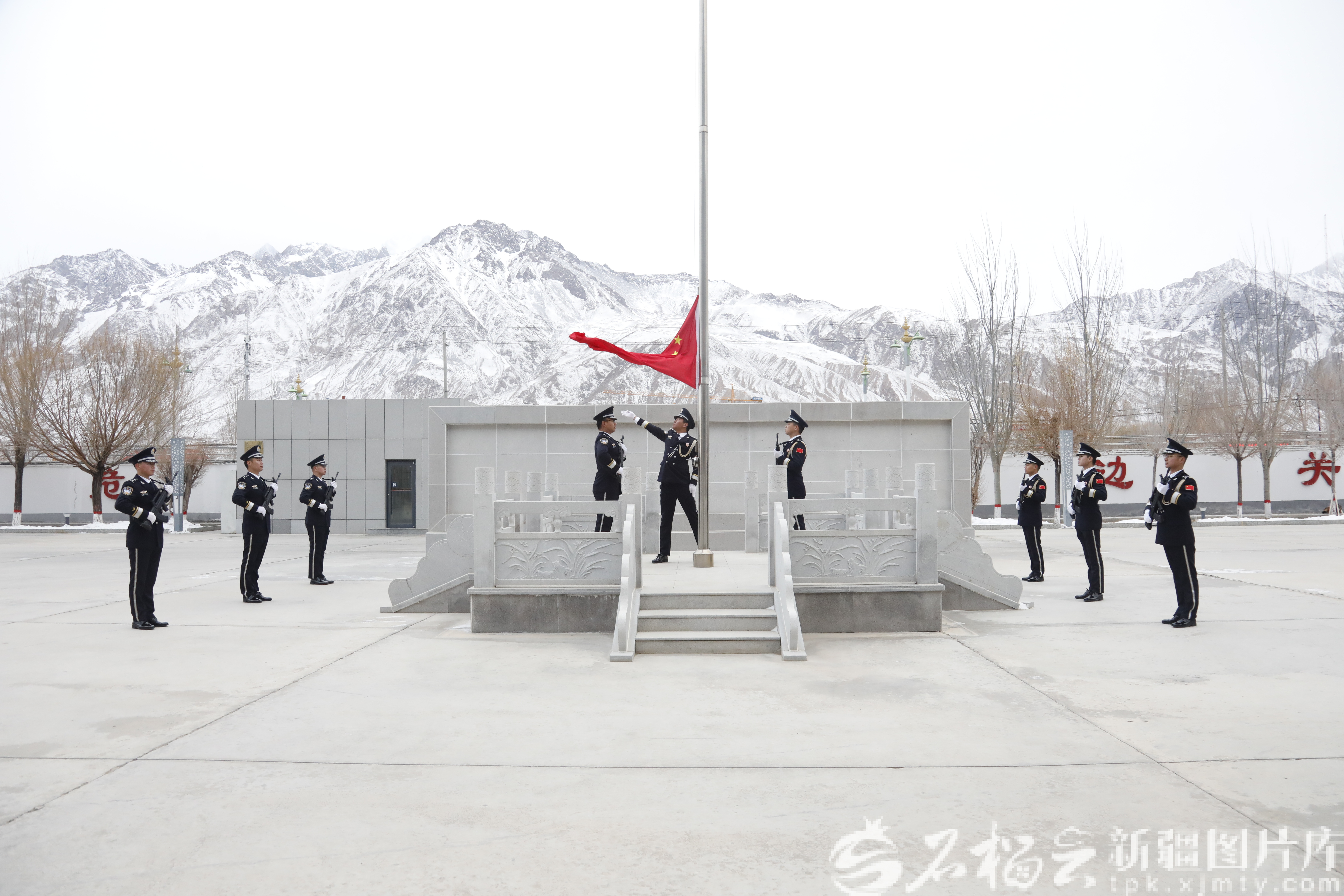 当新年第一缕晨光洒落在塔什库尔干塔吉克自治县时,新疆出入境边防检查总站卡拉苏出入境边防检查站的民警们早已在升旗台前整齐列队。