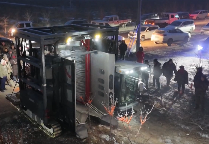 1月8日,国产自主研发的履带自走式浆果收获机在新疆生产建设兵团第九师170团试采沙棘成功。沙棘采收迈出了向机械化作业的全新一步。