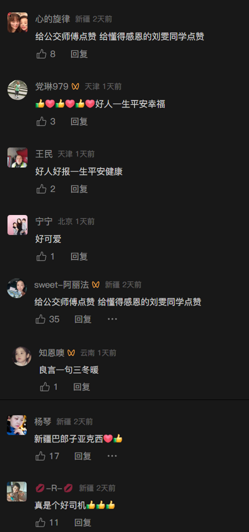 公交车司机阿不来提·阿布都拉师傅则质朴地回应:“特别感动,谢谢孩子们对我的认可,这也是我的动力。”