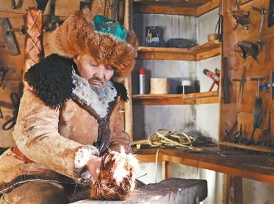 在阿勒泰市拉斯特乡拉斯特村,斯兰别克·沙合什一家传承着古老毛皮滑雪板制作技艺,至今已至第五代。