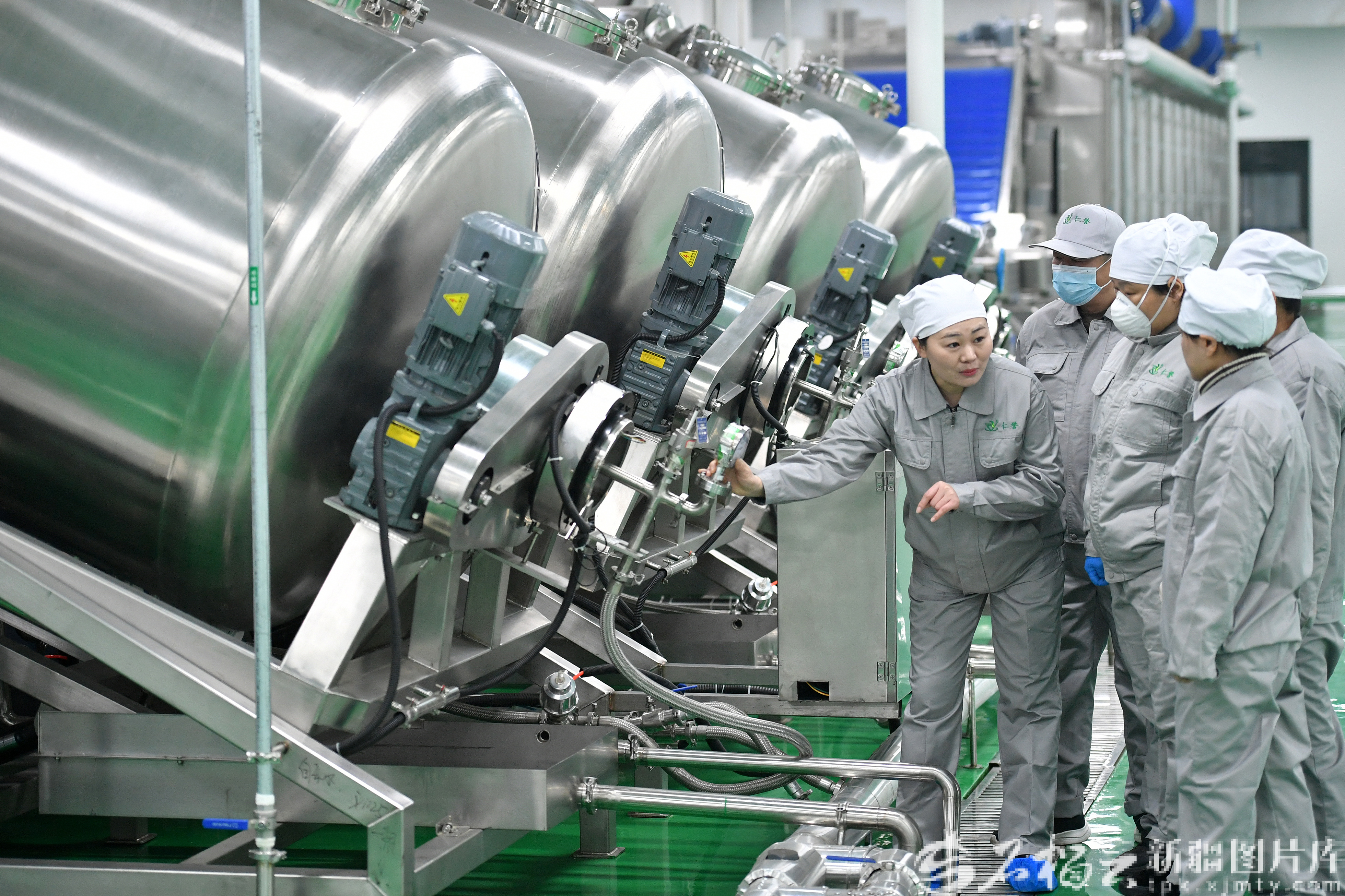 1月12日,生产技术部负责人指导工作人员使用新的中药饮片现代化联动生产设备。