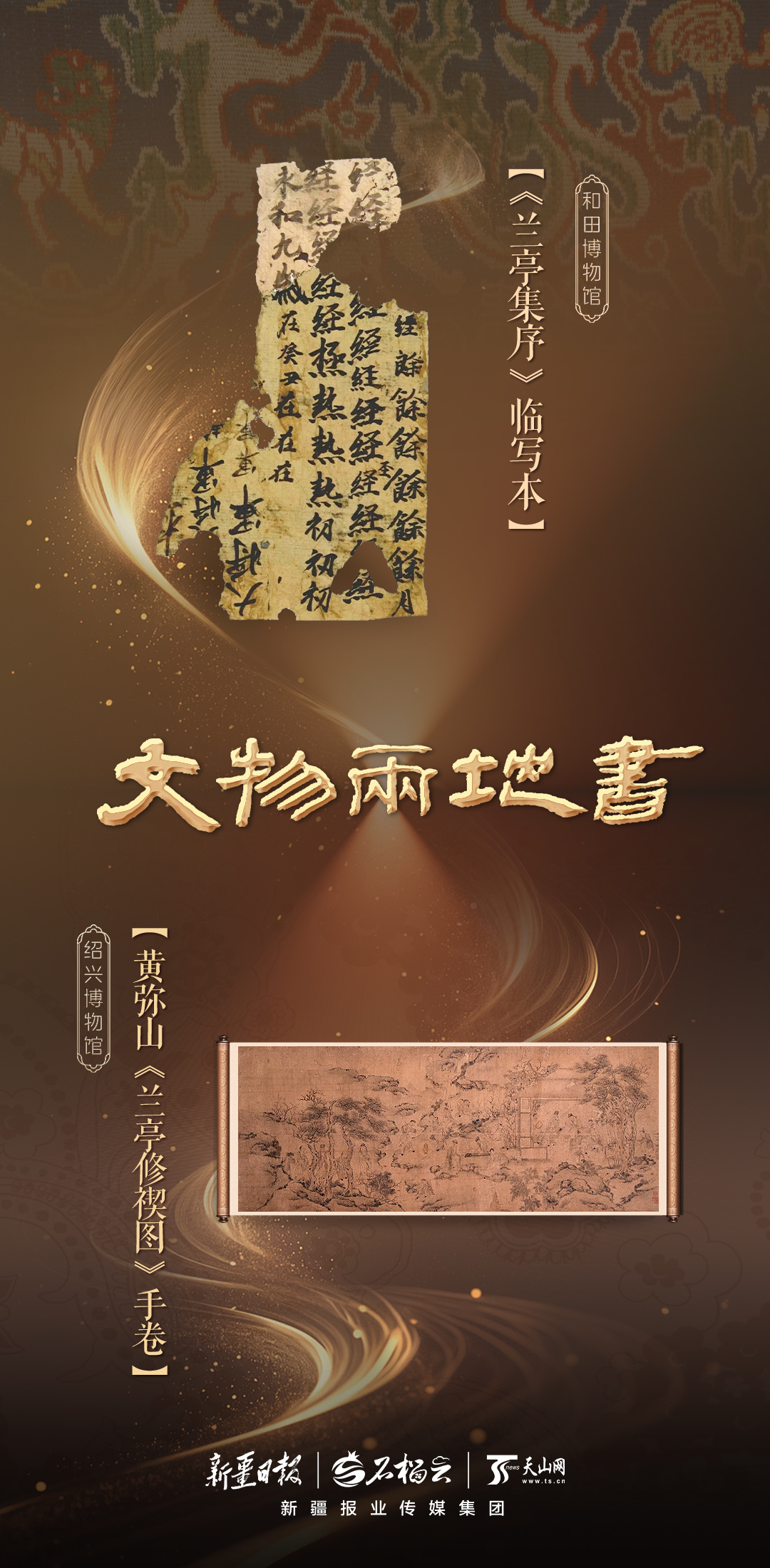 今日,由自治区党委宣传部指导,新疆日报社(集团)、自治区文物局主办的大型全媒体报道“文物两地书”推出第四期,这期与大家见面的两件文物:一件是绍兴博物馆珍藏的黄弥山《兰亭修禊图》,一件是新疆和田出土的唐代《兰亭集序》临写本。无论是文人墨客,还是习书少年,当他们提笔临写《兰亭序》时,笔下流淌的,同样是跨越地域、对中华优秀传统文化的深切认同与精神归依。