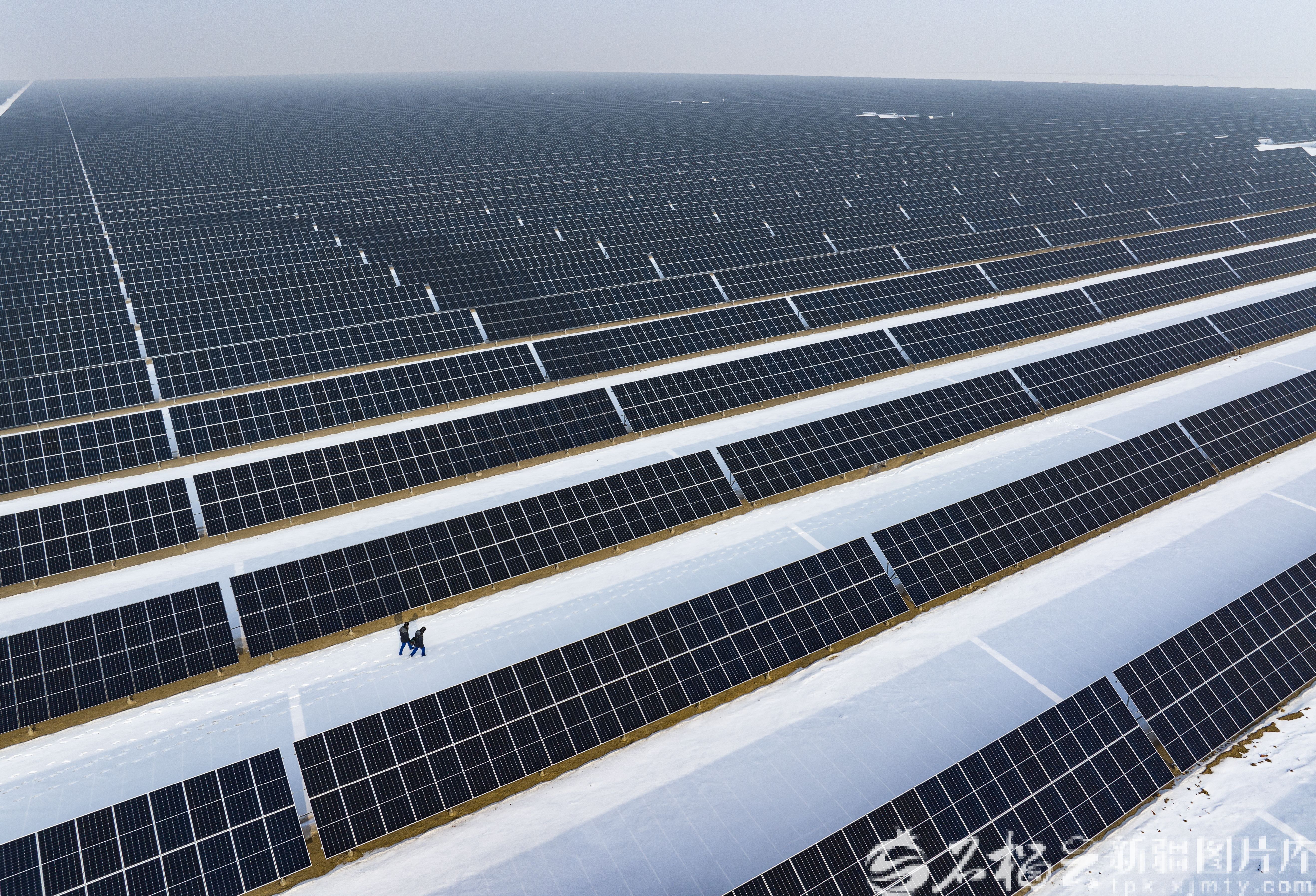 2025年1月24日,木垒哈萨克自治县光伏产业园,工作人员在检查设备运行情况。何龙摄