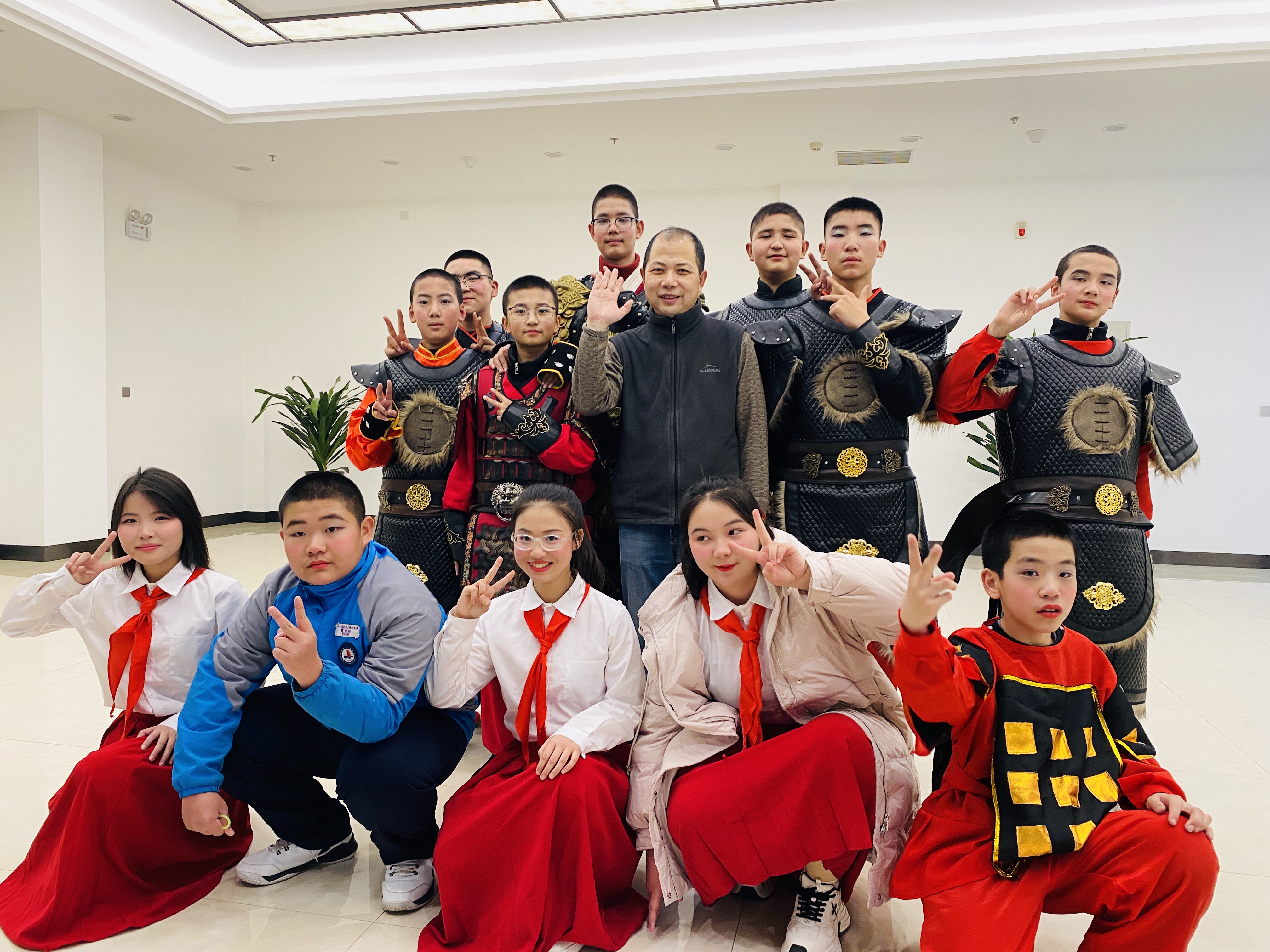 2025年1月7日,孙凯带领学校“红石榴剧社”学生参加文艺演出时合影。肖颖圣 摄