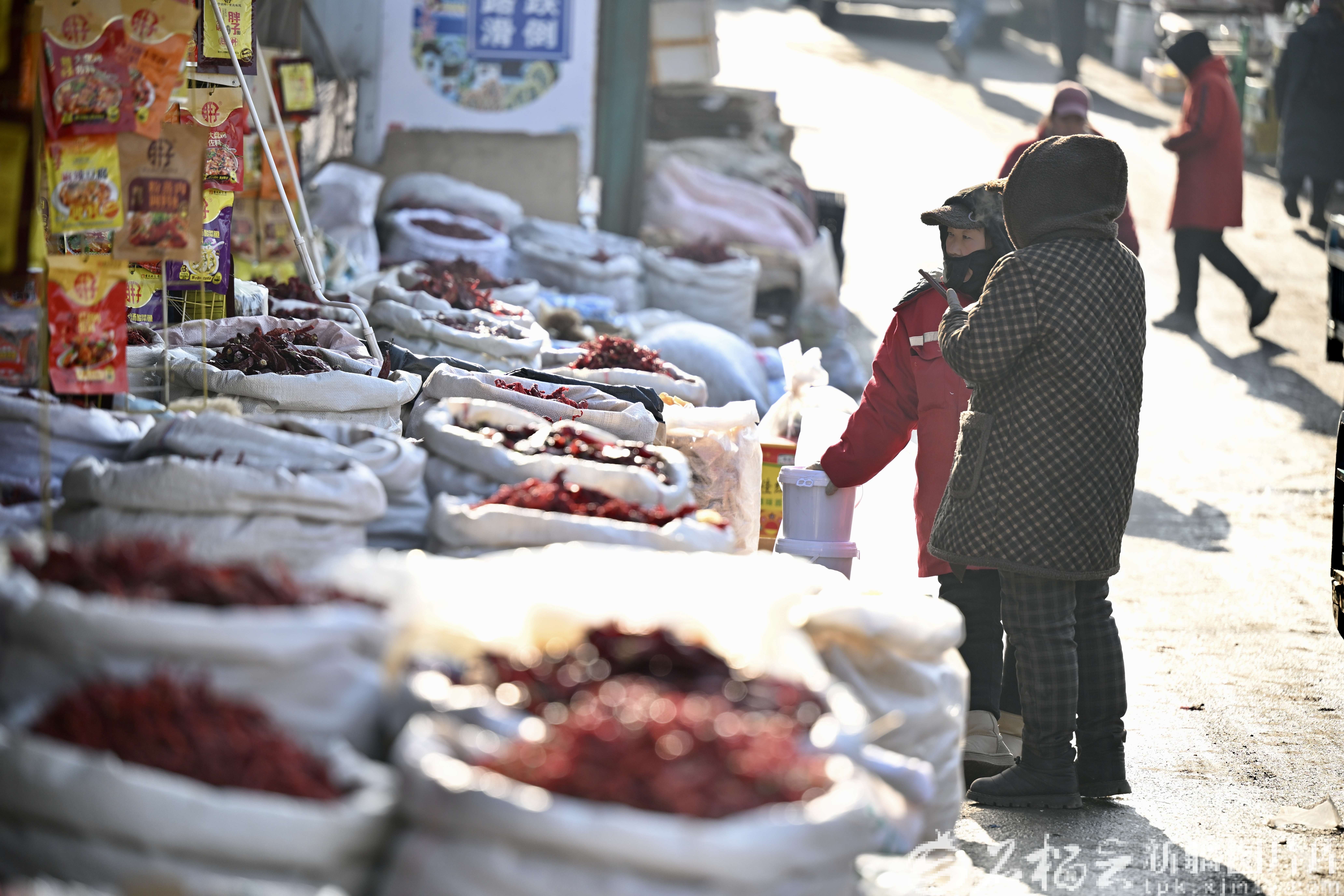 1月21日,市民在凌庆蔬菜果品批发市场内购买调料。
