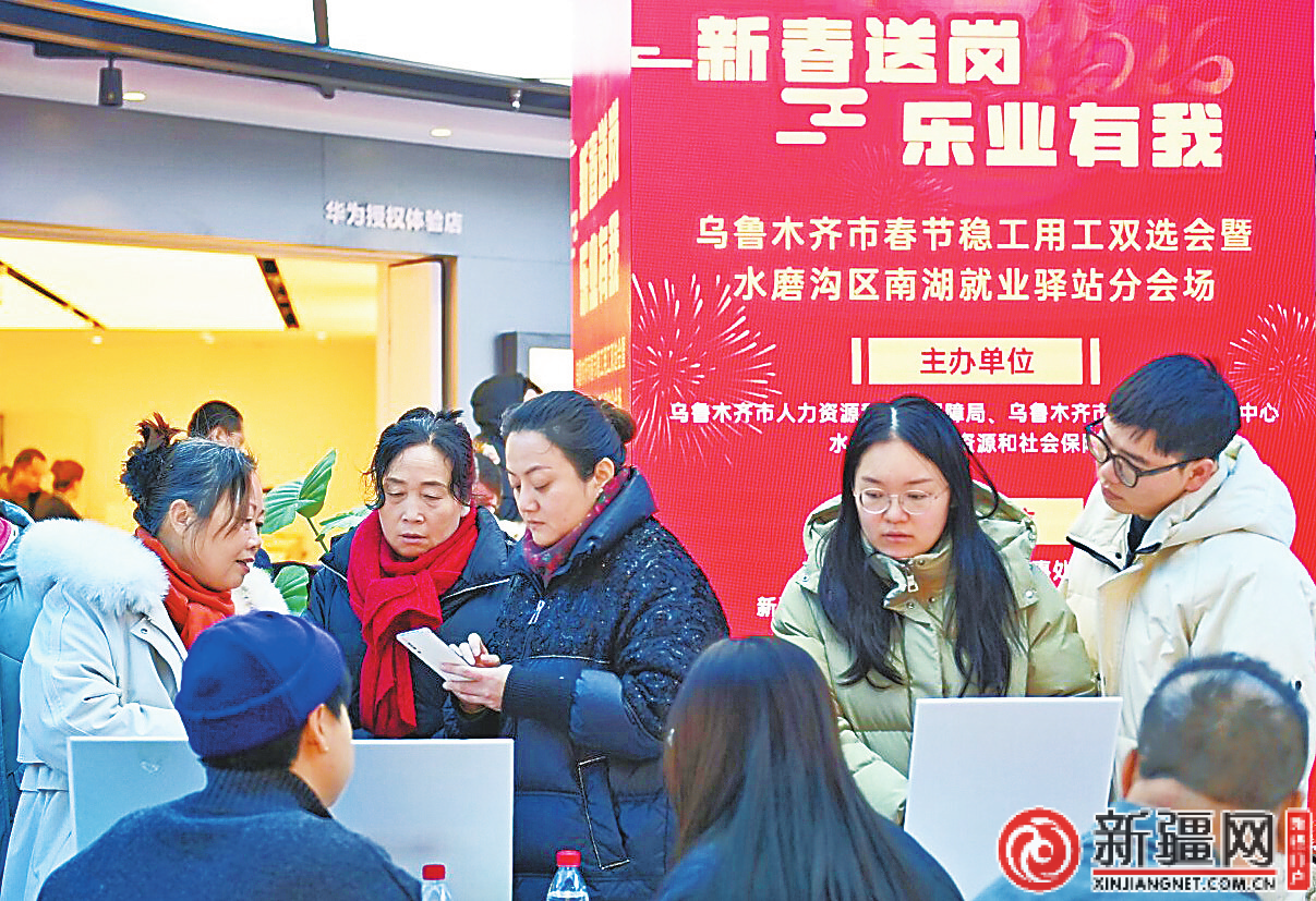 1月21日,以“新春送岗乐业有我”为主题的春节稳工用工双选会在乌鲁木齐市10大招聘会场同步启幕,遍布全城人流密集、交通便利区域的招聘点织就一张“就业服务网”,让企业觅得良才、求职者寻得良机,用稳稳的就业为城市增添暖意。