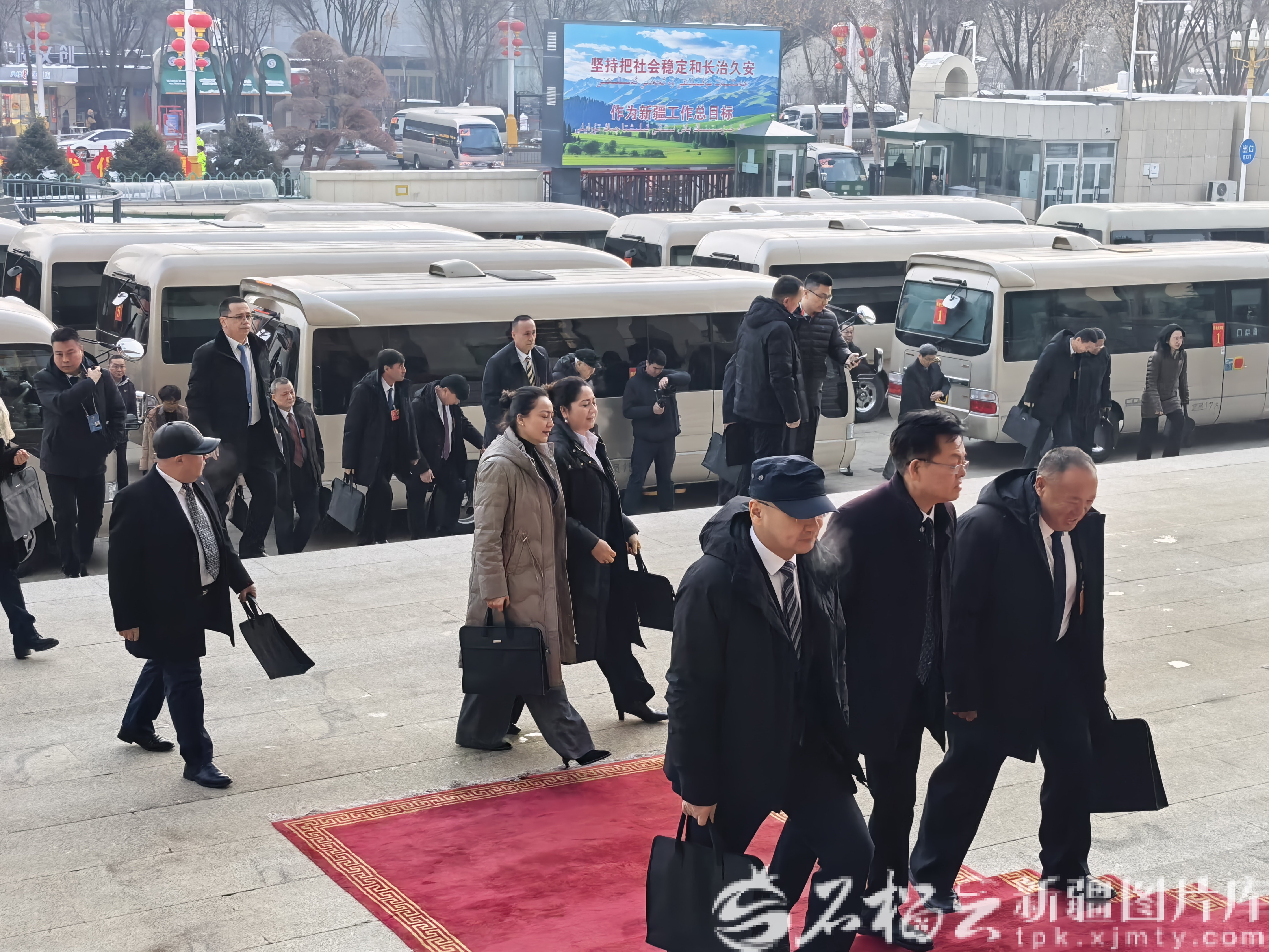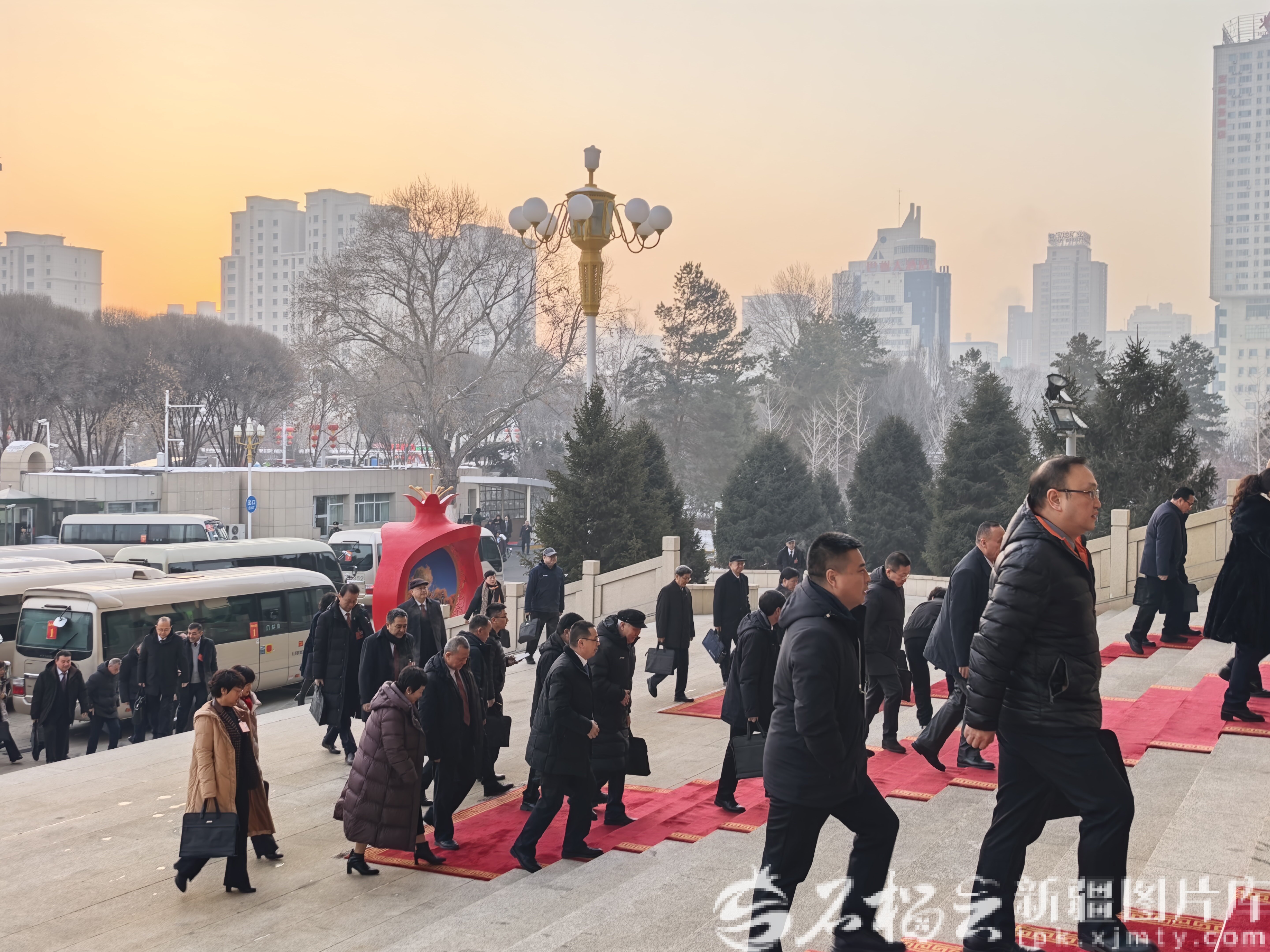 1月26日上午,出席自治区政协十三届四次会议的政协委员步入新疆人民会堂。