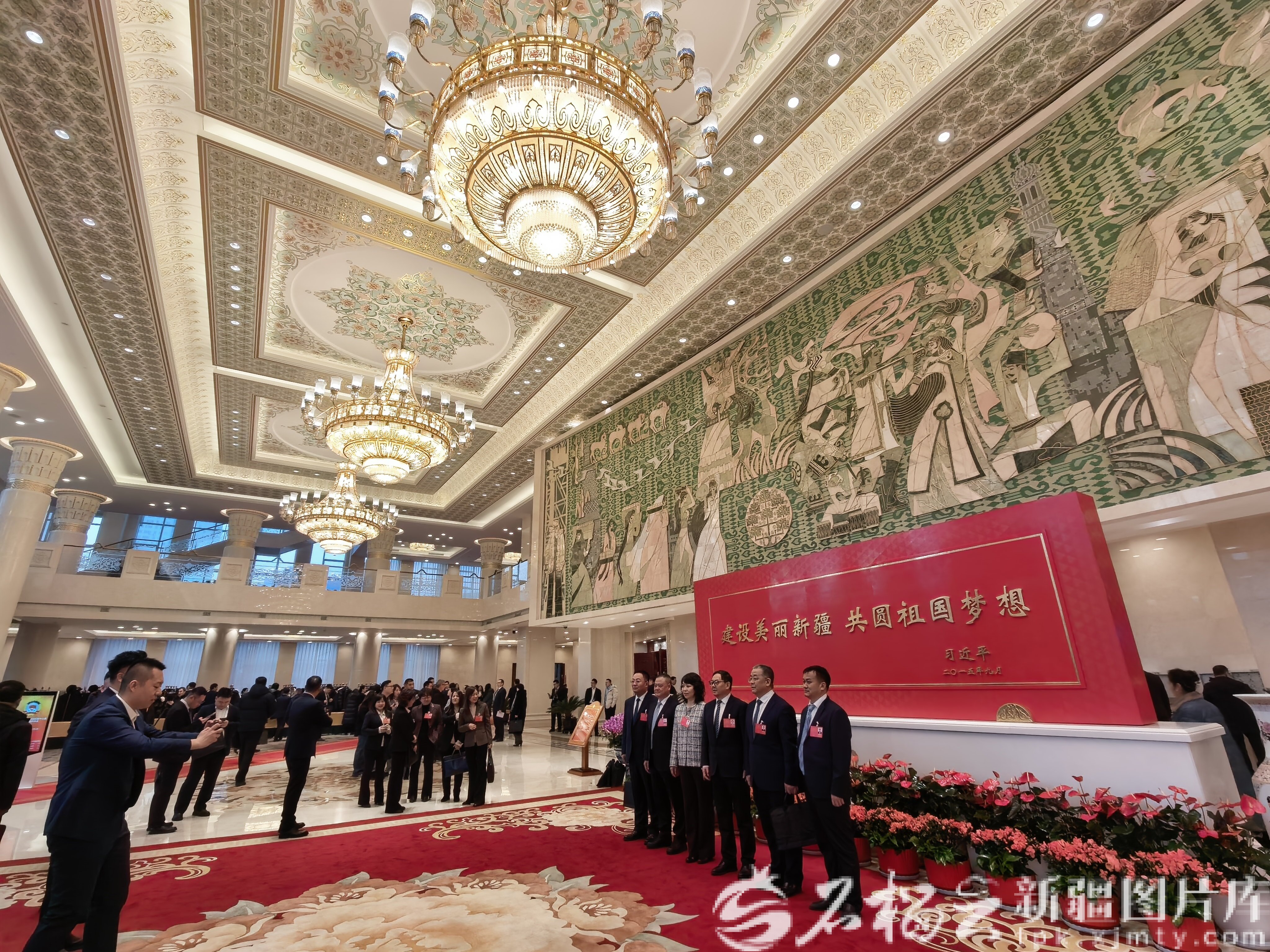 1月26日上午,出席自治区政协十三届四次会议的部分政协委员在新疆人民会堂大厅合影。