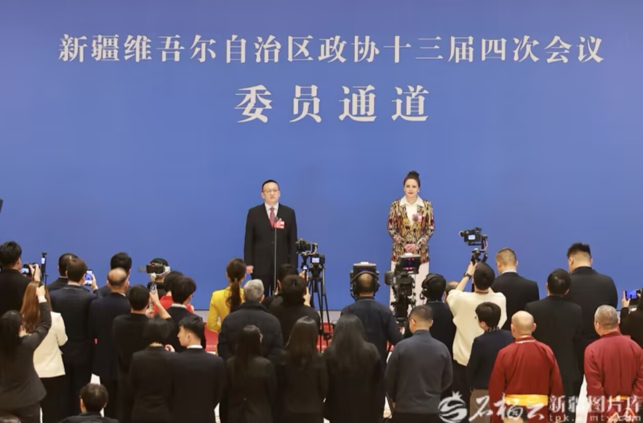 大会开幕前,自治区政协十三届四次会议“委员通道”开启。6名委员分3组依次走到话筒前,面对媒体,畅谈建议心声,讲述新疆变化,传递发展强音。
