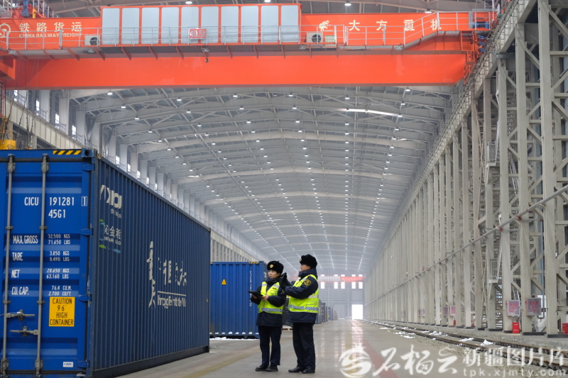 2026年1月7日,阿拉山口海关关员对中欧(中亚)班列开展监管作业。潘嘉阳 摄