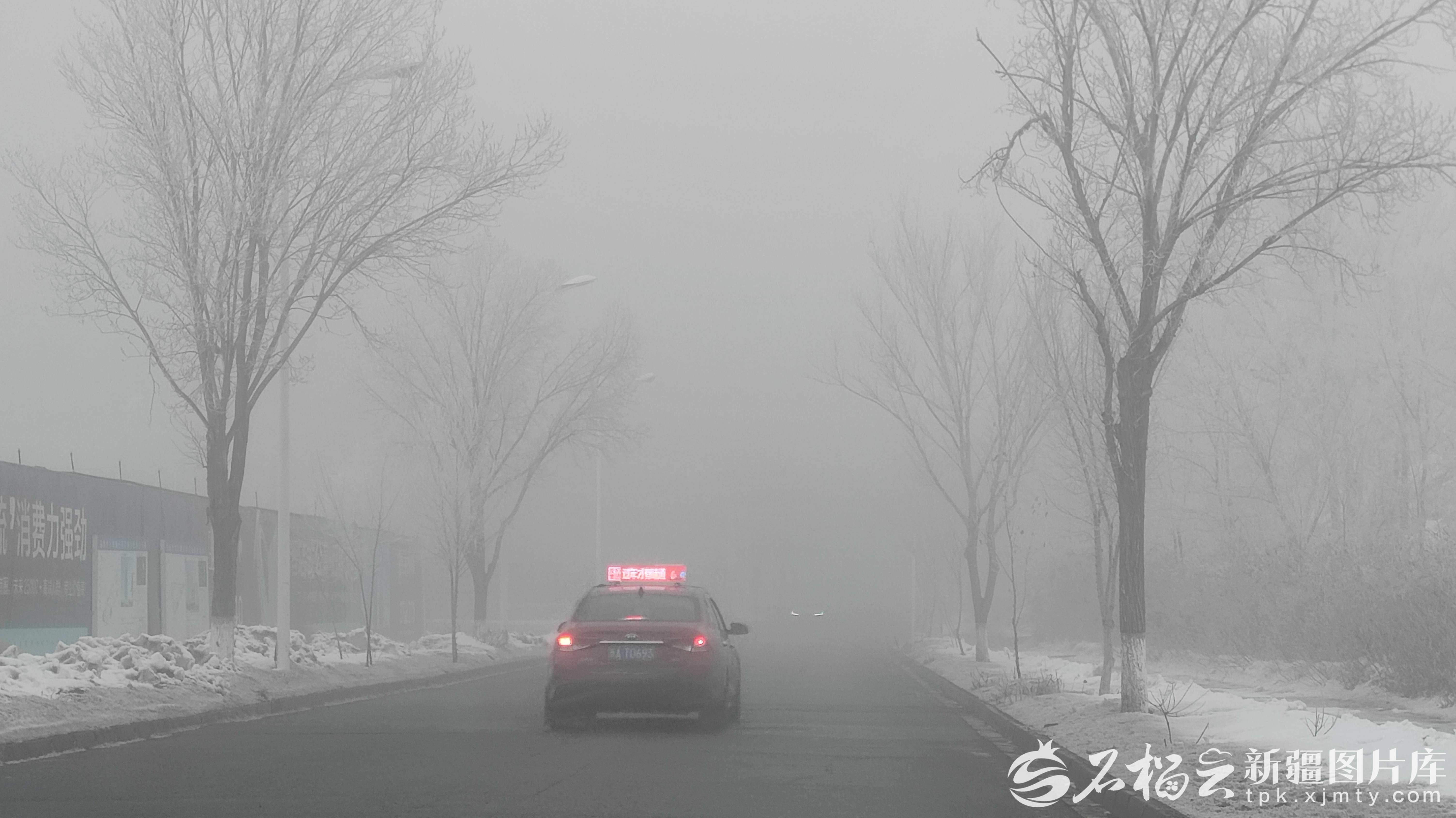 2月6日10时30分,乌鲁木齐市翠湖路大雾弥漫。石榴云/新疆日报记者 张万德摄