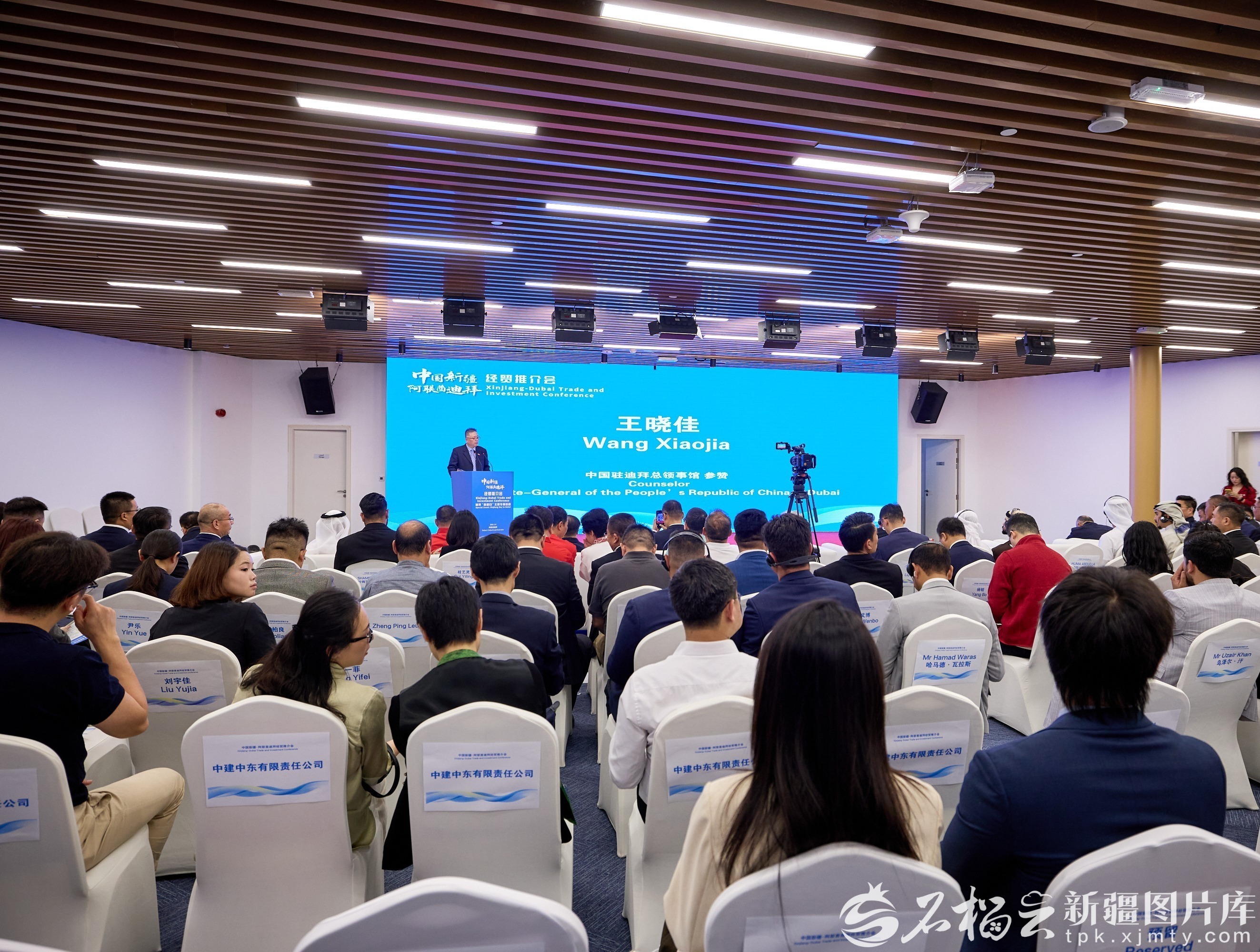 中国新疆—阿联酋迪拜经贸推介会现场。图/中国国际贸易促进委员会新疆维吾尔自治区委员会提供