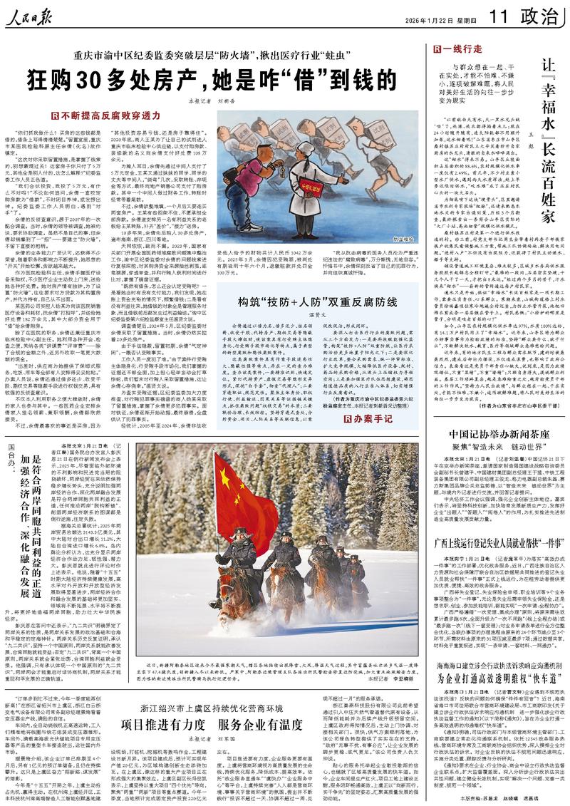 一篇是人民日报1月22日刊发的图片新闻“喀纳斯边境派出所民警正在骑马执行巡逻任务”。该新闻展示了喀纳斯边境派出所民警冒着强寒潮天气,认真检查修复边防设施,加大重点地域踏查力度的感人瞬间。