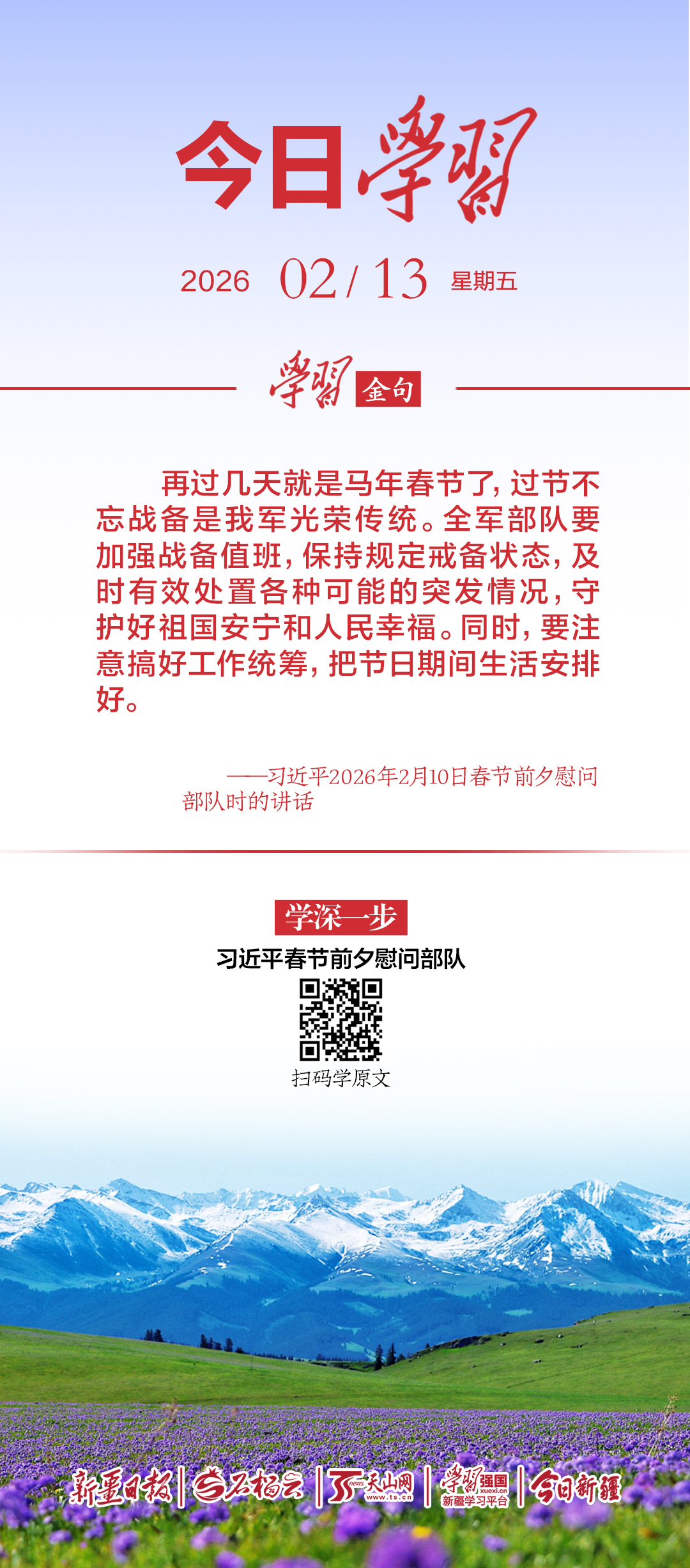 ——习近平2026年2月10日春节前夕慰问部队时的讲话