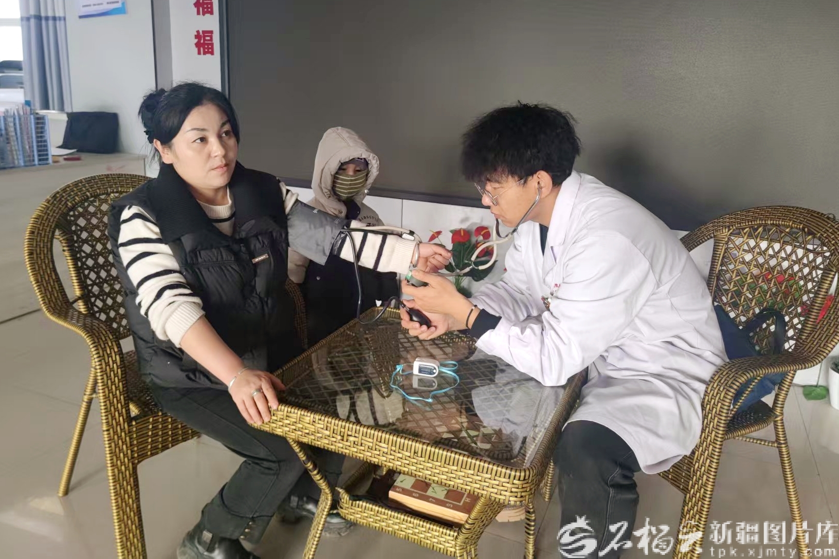 2025年3月,昭苏县昭苏镇加曼台村村委会,健康宣教后,村医崔曦文给村民看诊(资料片)。图由本人提供