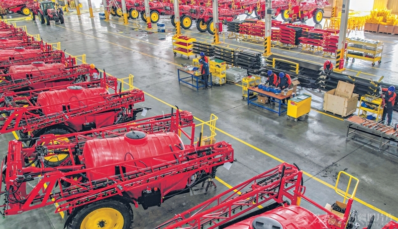 2月25日,位于乌苏市的新疆钵施然智能农机股份有限公司生产车间里机器轰鸣,工人们各司其职全力赶农机订单。 □李仁锡摄