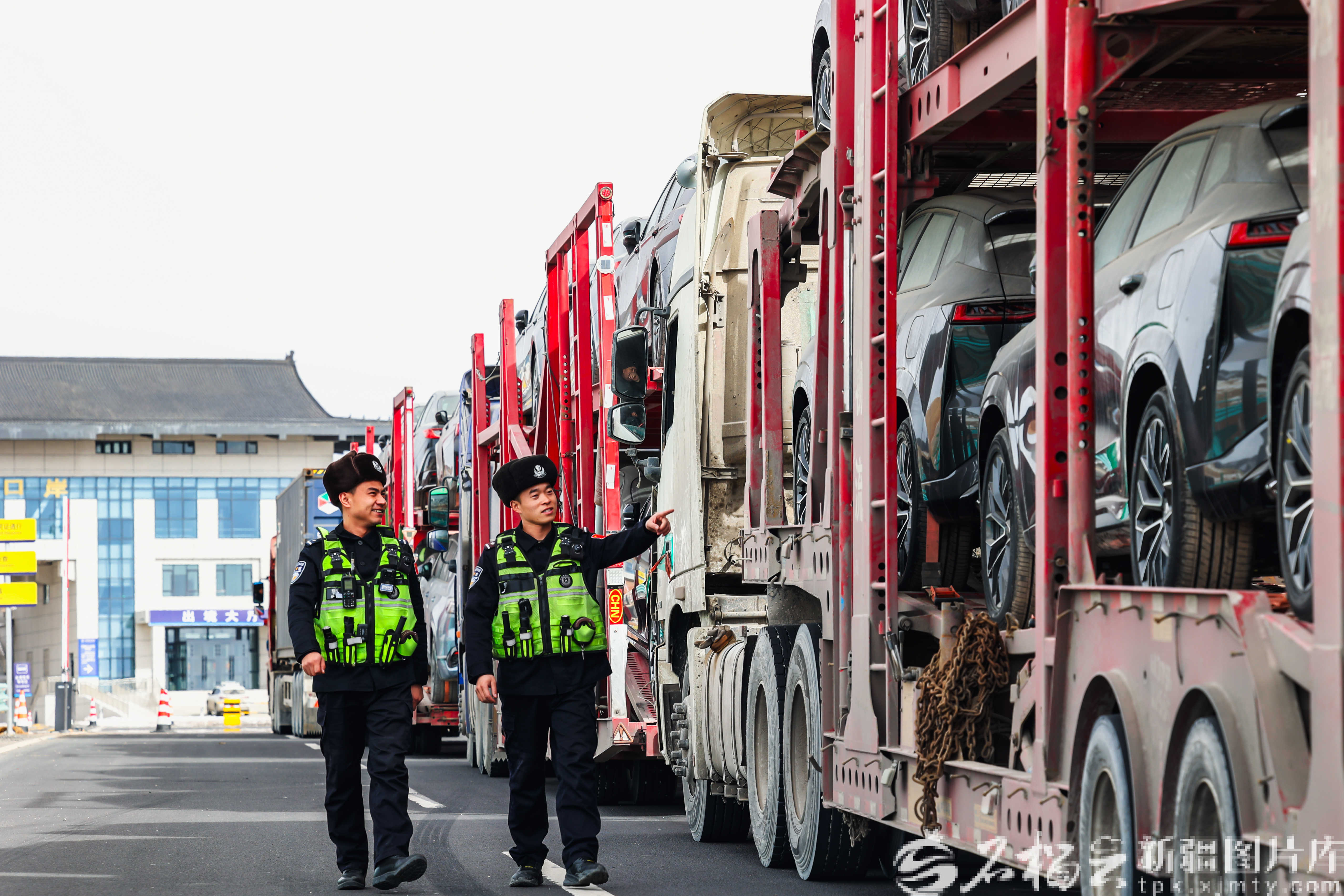2月26日,新疆出入境边防检查总站吐尔尕特出入境边防检查站在检查出境车辆。陈燕 摄