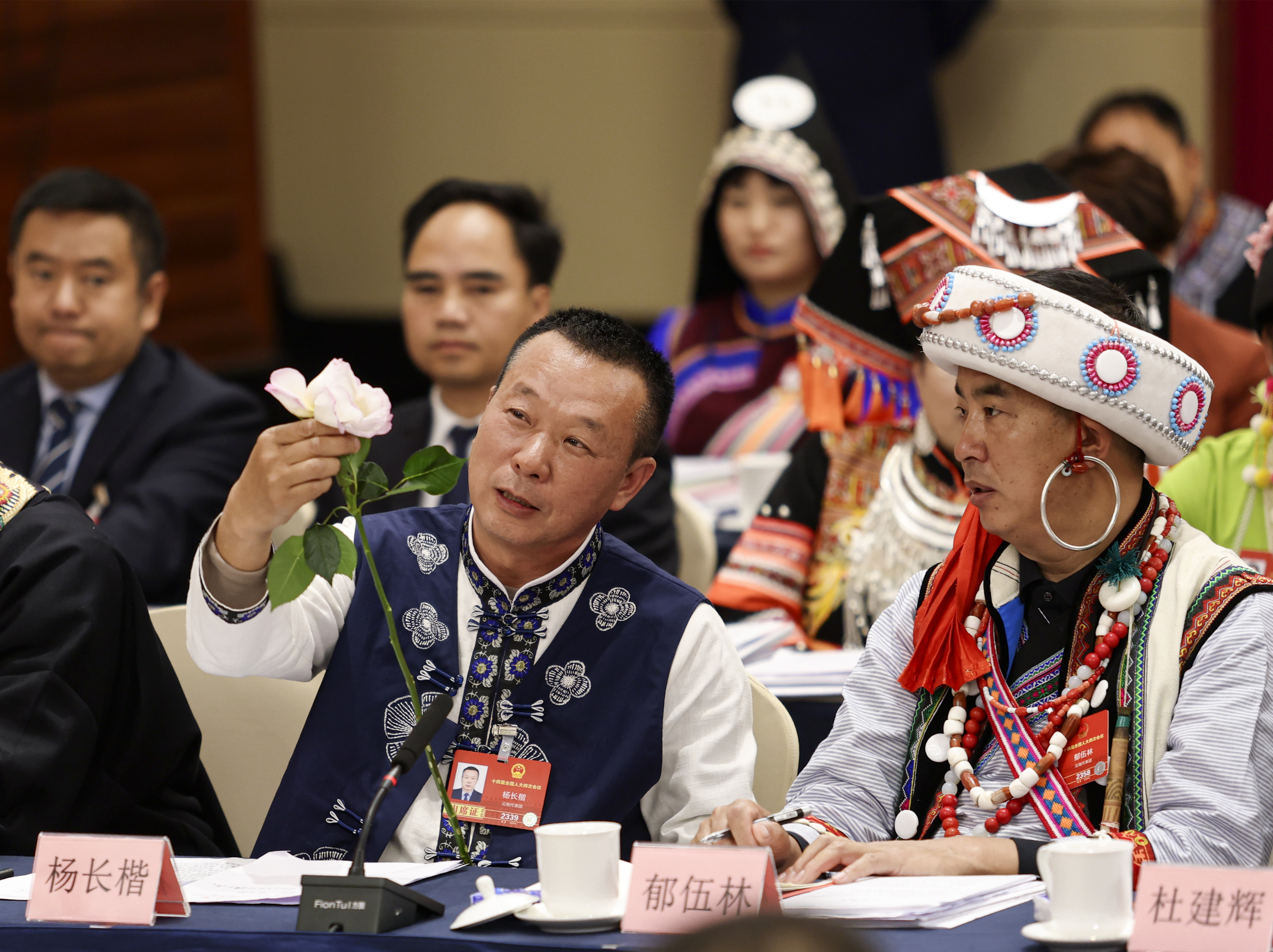 全国人大代表、云南省农科院热区生态农业研究所副研究员杨长楷把月季带到全国两会。□云南日报记者 陈飞 胡妤雅/摄