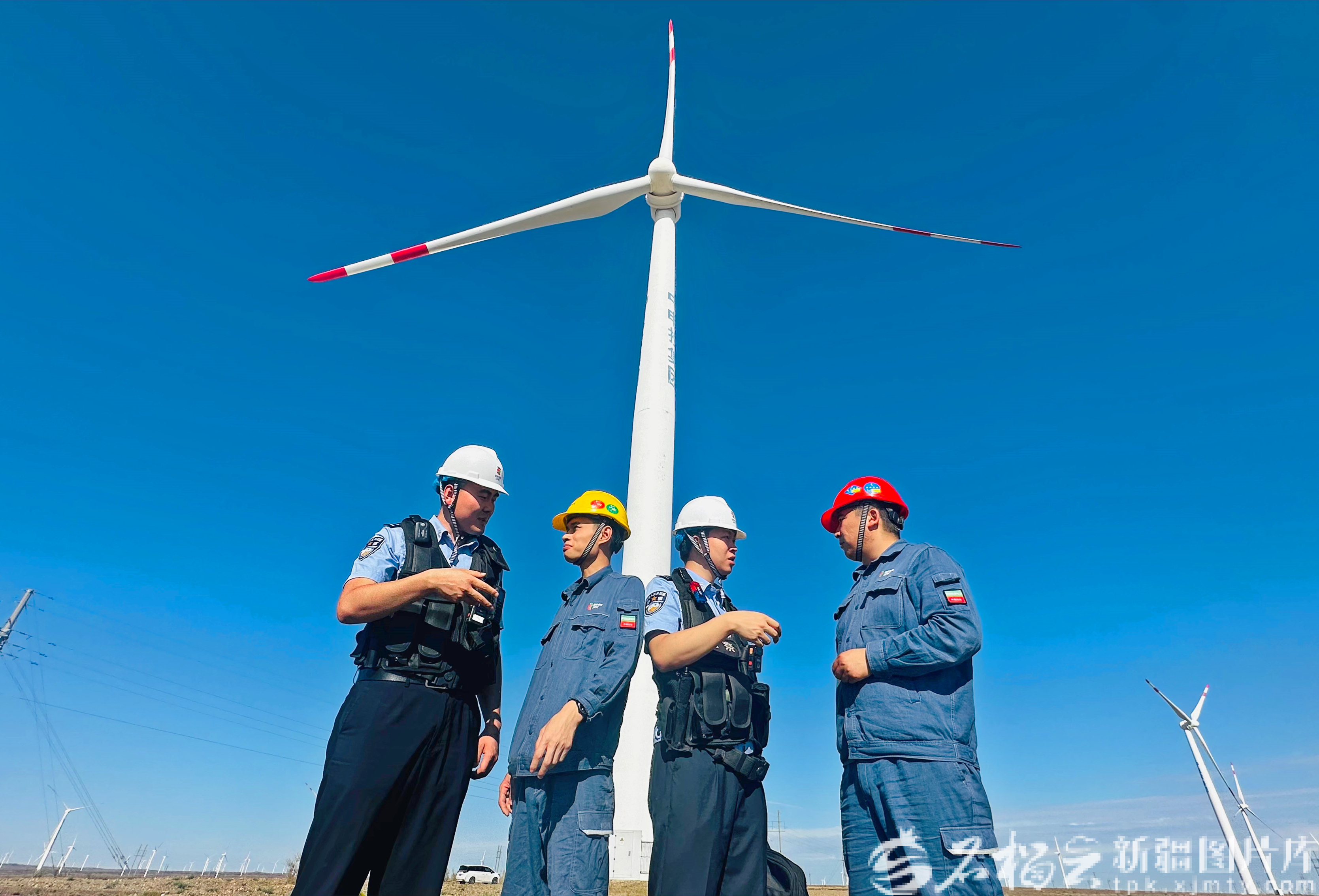 图为派出所民警、企业安全员前往风机塔筒内部开展安全隐患排查。 通讯员 伊力夏提·阿依丁摄