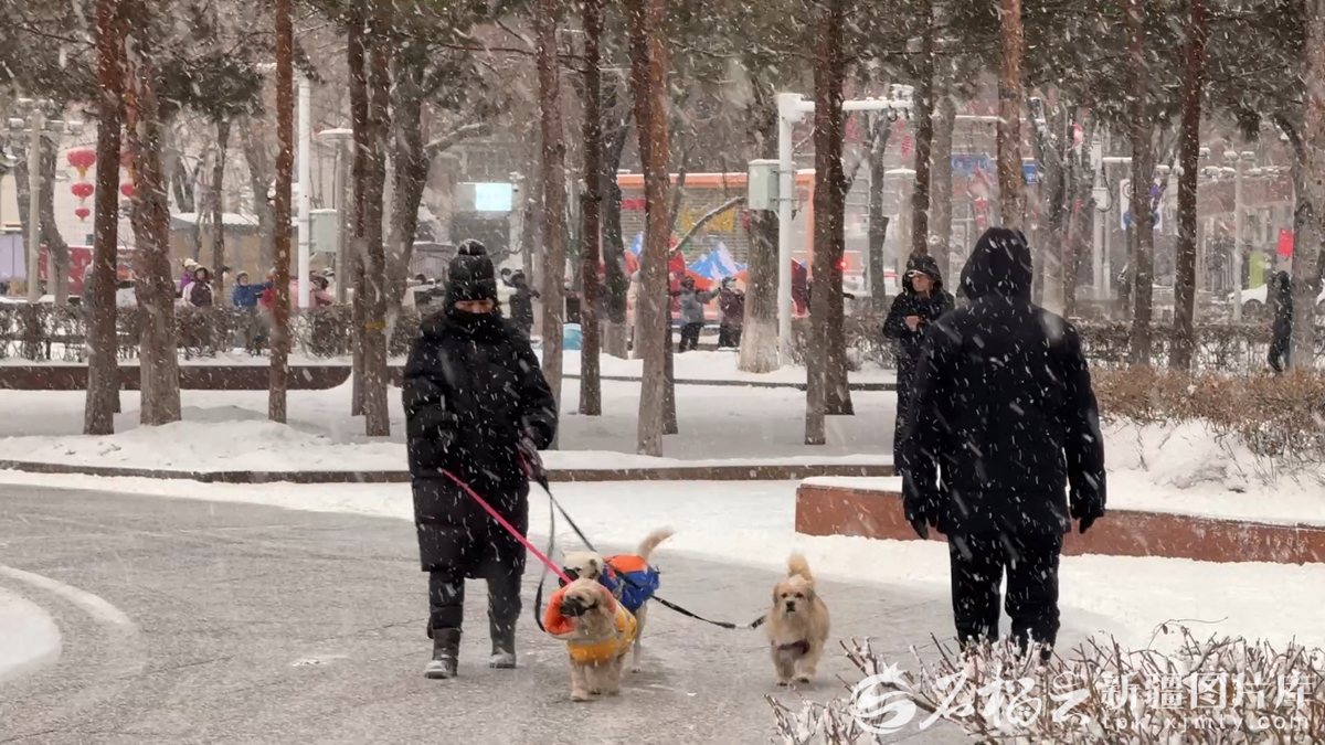 一个穿红羽绒服的小女孩在广场上跑来跑去,伸手接雪花,化了,再接,又化。她的妈妈举着手机追着拍:“发个朋友圈,让老家的亲戚看看,乌鲁木齐的雪多好看。”