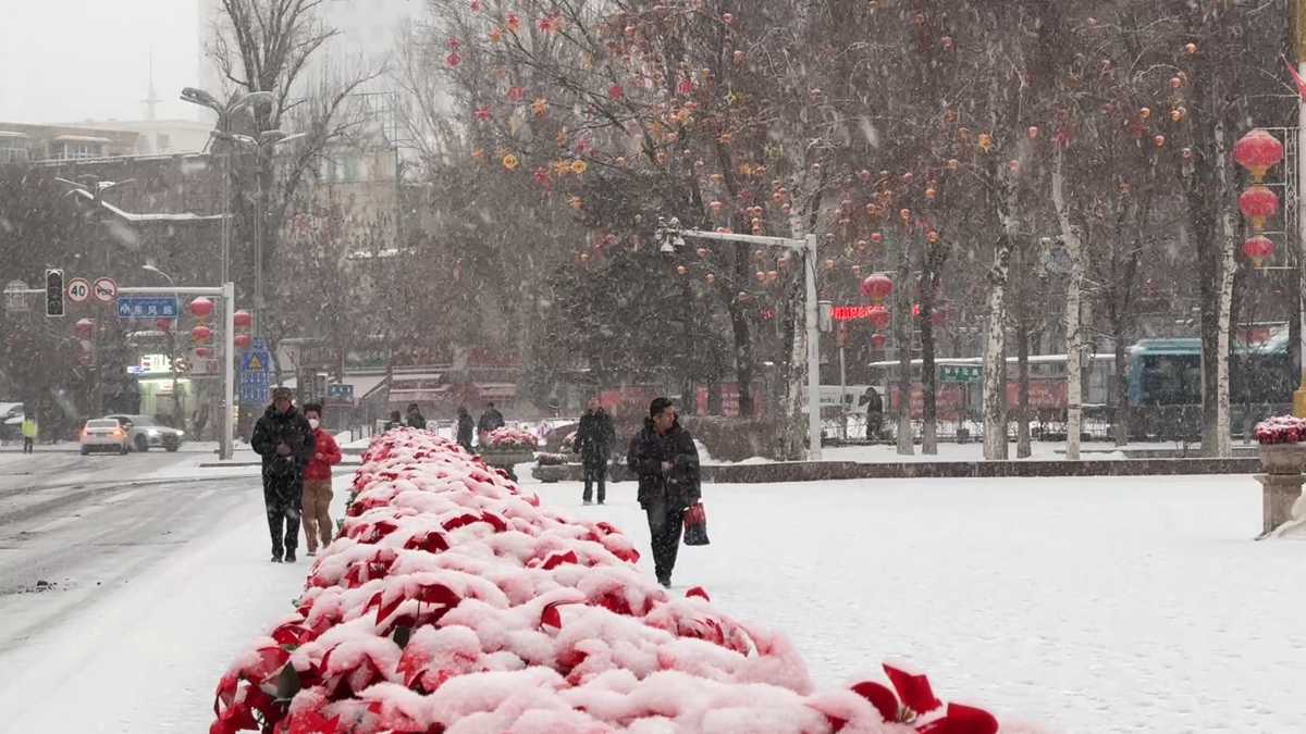雪花从凌晨开始就在飘落。细碎的、轻得几乎没有重量的雪,落在人民广场纪念碑的顶端,落在晨练老人的肩头,落在主播举起的手机镜头上。