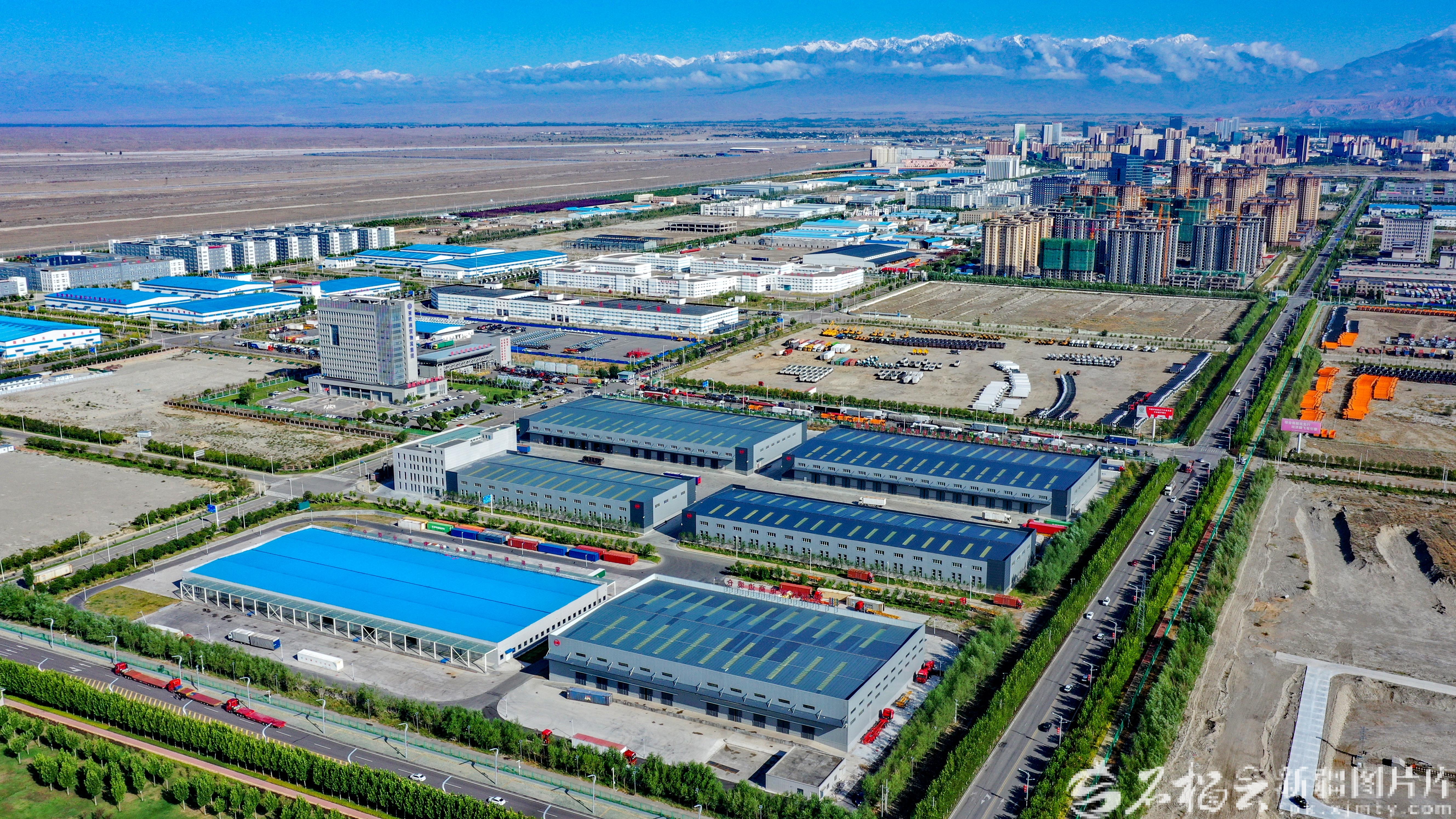 俯瞰霍尔果斯综合保税区(资料图)。石榴云/新疆日报记者 蔡增乐摄