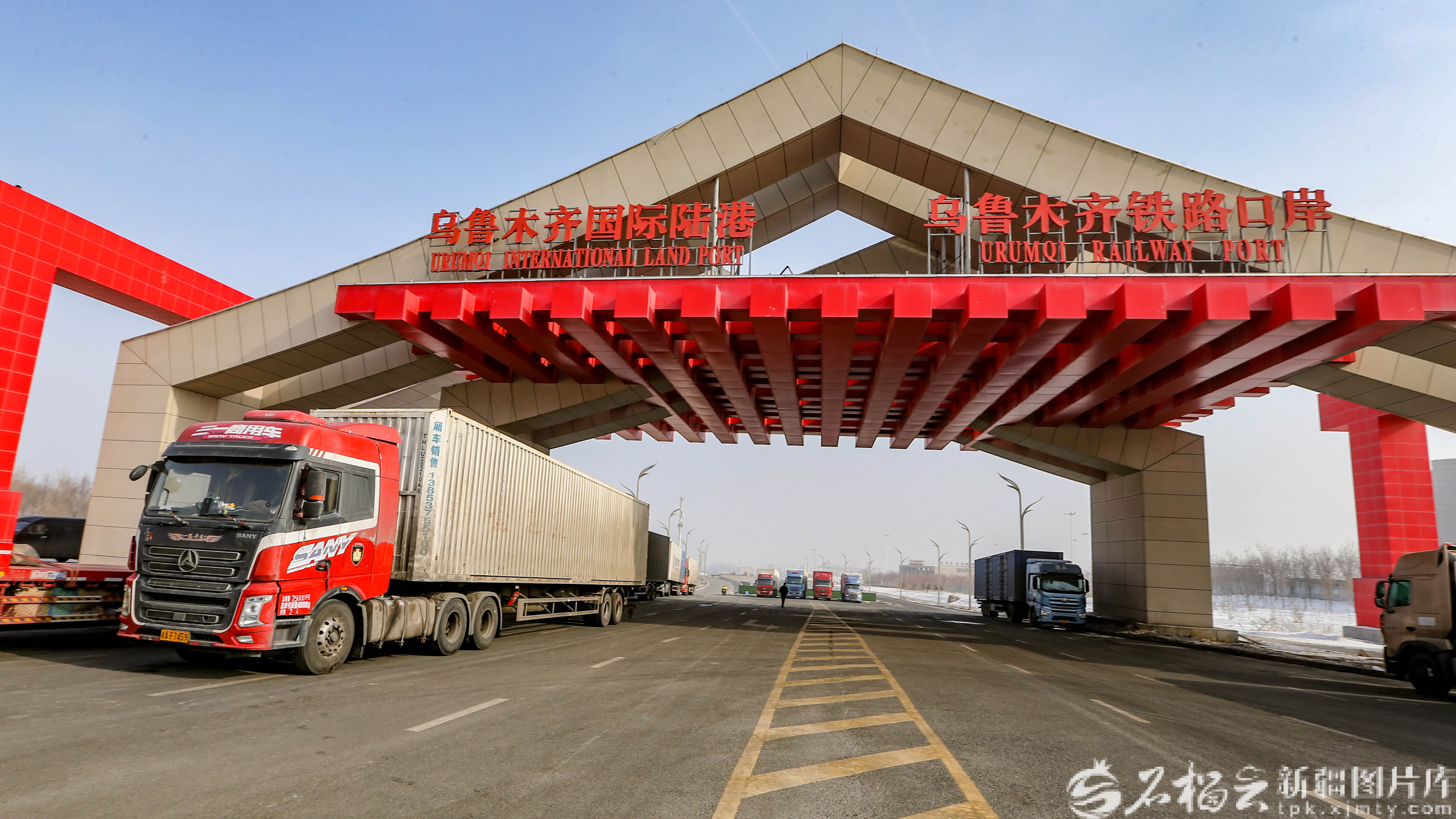车辆从乌鲁木齐国际陆港区驶出(资料图)。石榴云/新疆日报记者 蔡增乐摄
