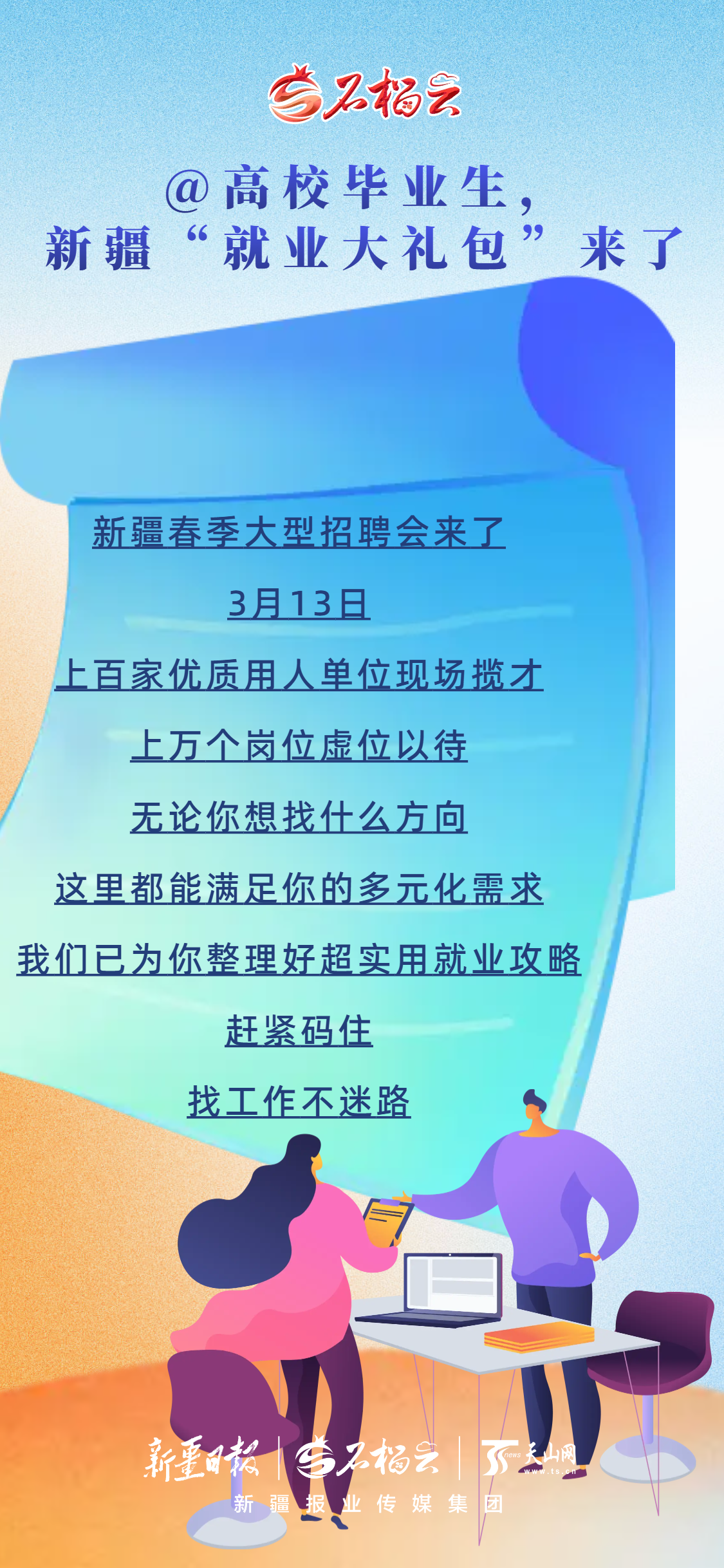 @高校毕业生,新疆「就业大礼包」来啦!无论你心仪什么方向、规划何种未来,这份超实用的就业礼包都能精准匹配你的多元需求。速速收藏,求职不迷茫,就业不迷路。
