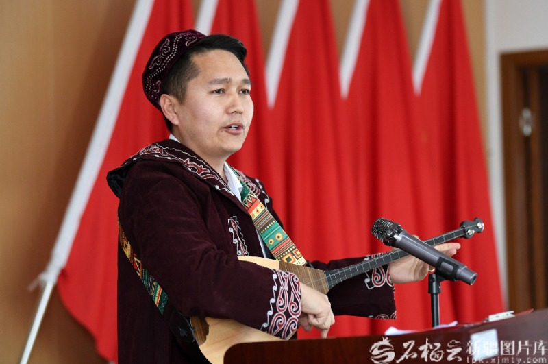 3月24日,乌鲁木齐经济技术开发区(头屯河区)西湖街道阿合乔克村的村民讲述故事《我和我家》。